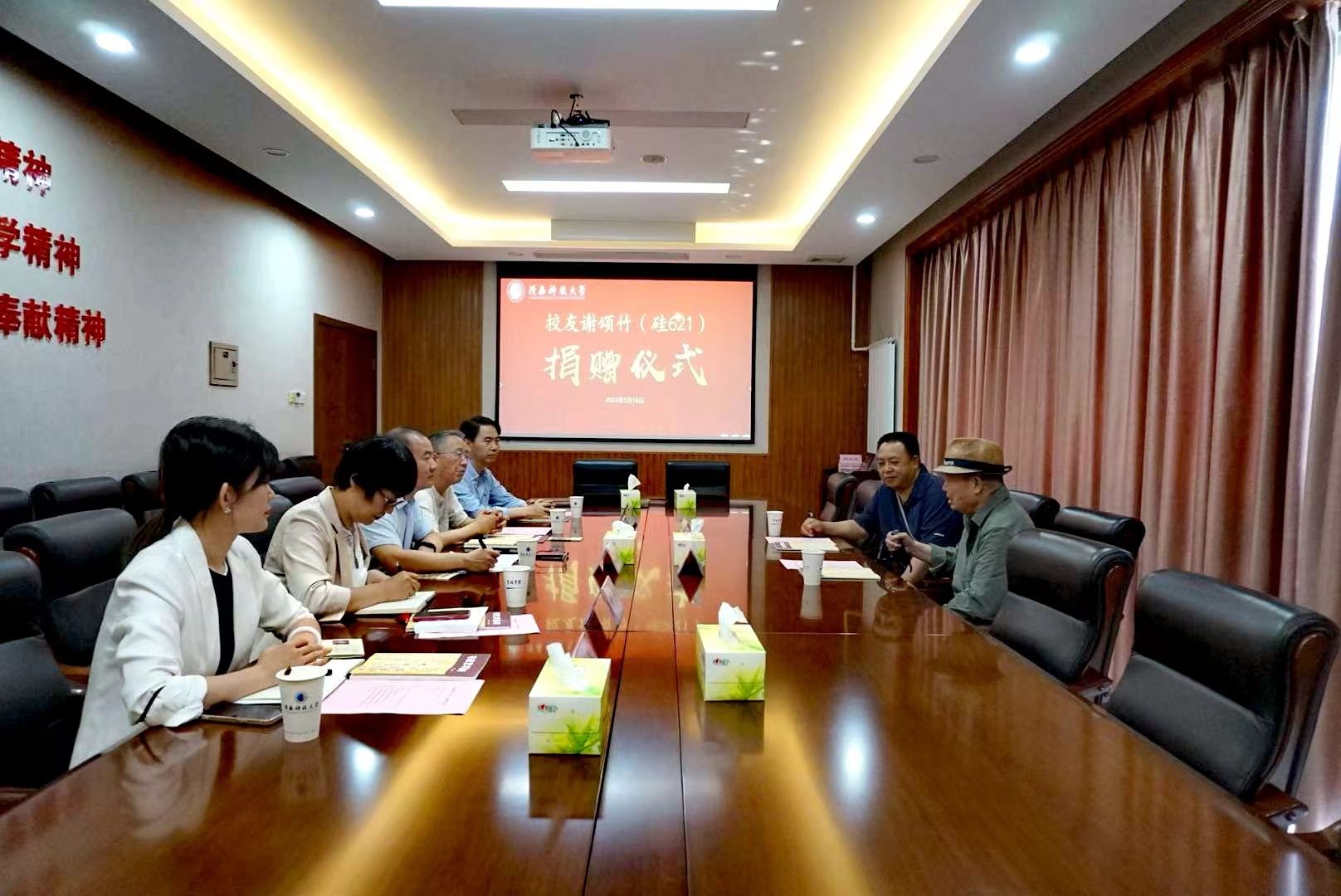 5月16日上午,学校迎来了一位特殊的客人——北轻老八届校友谢颂竹(硅621),他怀着对母校的深厚感情,向母校捐赠了自己的著作和书画作品。校友总会顾问王宏、档案馆副馆长郑勇、设计与艺术学院副教授祁自敏参加捐赠仪式,仪式由校友总会办公室主任殷立雄主持。