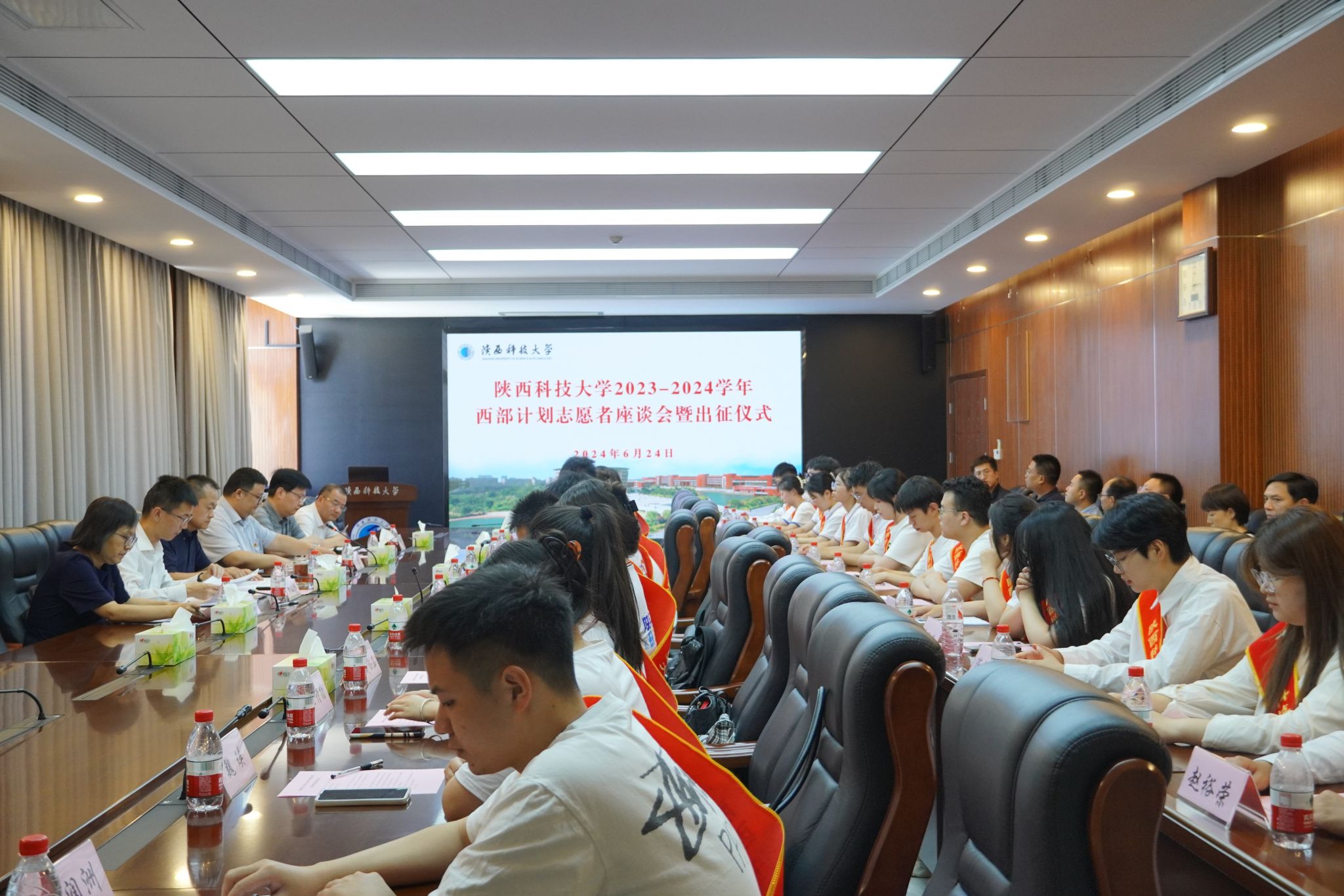 学工部、教务处、研工部、校友总会、校团委等部门负责人,各二级学院学生工作负责人,第26届研究生支教团全体成员及2024年西部计划全体志愿者参加会议。会后,与会老师与全体西部计划志愿者合影留念。