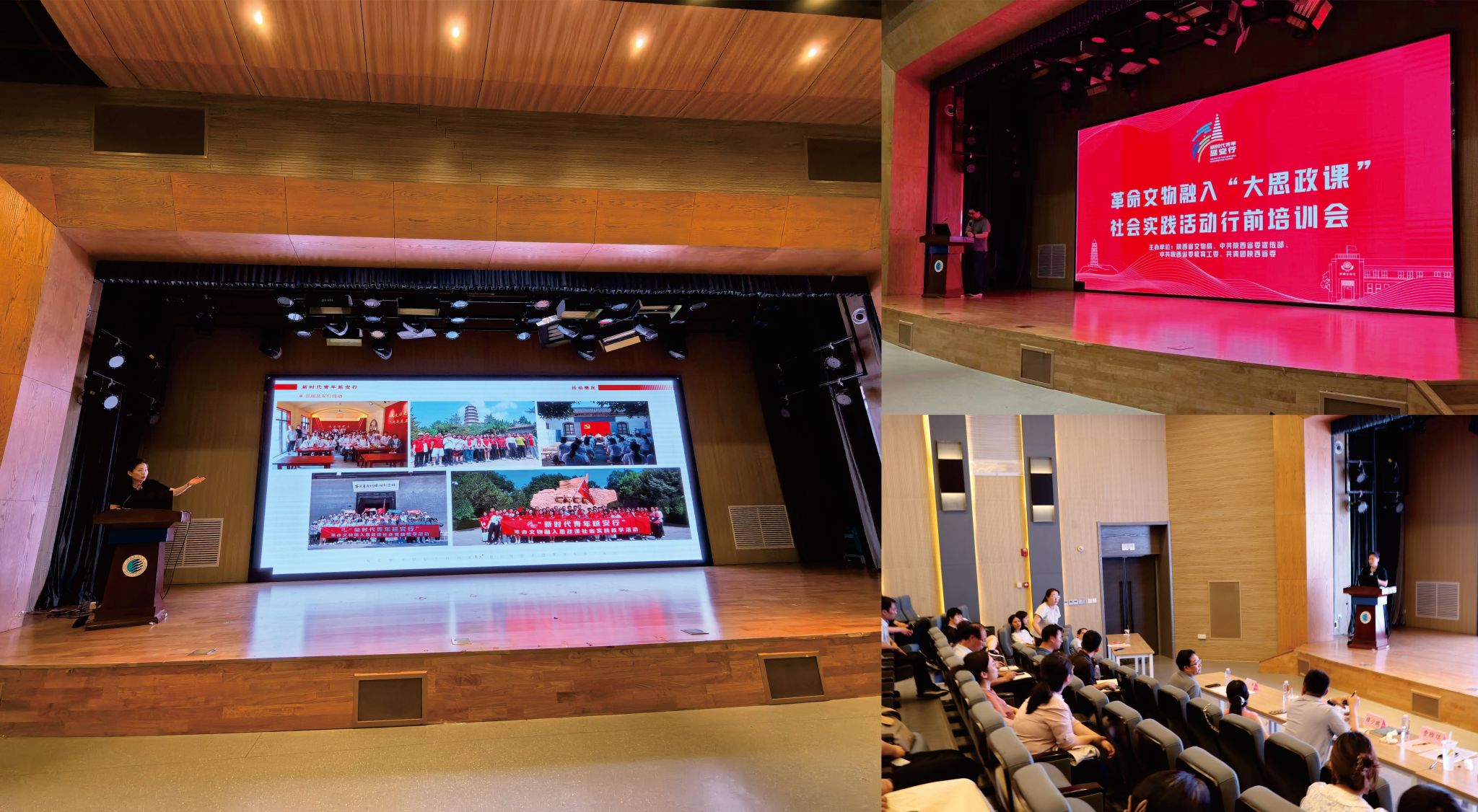 新时代青年延安行革命文物融入“大思政课”社会实践活动,以抗战时期爱国进步青年北上延安为历史背景,以当时的八路军西安办事处旧址一一延安线路为参考,途经泾阳、富平、黄陵、洛川、甘泉等地,参访安吴堡战时青年训练班革命旧址、照金红色小镇、宜君旱作梯田、甘泉雪地讲话、宝塔山、枣园革命旧址、延安革命纪念馆等革命场馆,调研八千里豆腐干厂等反映乡村振兴成果的企业,使青年学生实地感受延安精神的内涵,加深对思政课程理论知识的理解。该活动被国家文物局、教育部联合开展以革命文物为主题的“大思政课”评为优质资源示范项目。