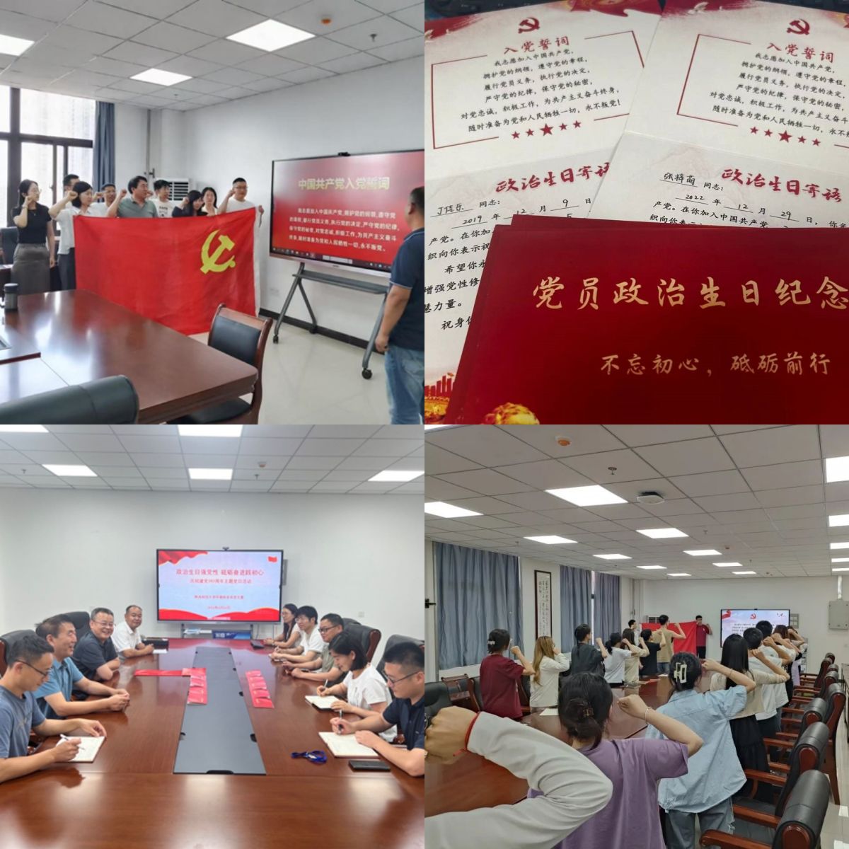 材料科学与工程学院党委通过组织开展党员“重温入党誓词”,为新发展党员佩戴党员徽章等形式多样的主题党日活动,庆祝中国共产党成立103周年。