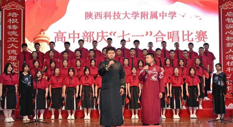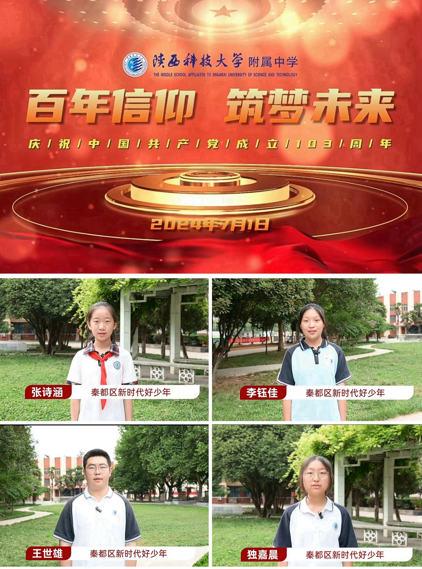 为弘扬伟大建党精神,传承红色基因,持续推动“强党建、带队建、促团建”走深走深。7 月 1 日的升国旗仪式上,附中团委书记孙浩以《传承精神心向党 勇担使命梦启航》为题,面向全体学生作了国旗下讲话;组织开展“传承红歌颂党恩,不忘初心跟党走”合唱比赛,唱响感党恩、跟党走的青春主旋律;以“百年信仰,筑梦未来”为主题,组织荣获秦都区“新时代好少年”学生代表开展主题朗诵活动,为党献上最诚挚的祝福。