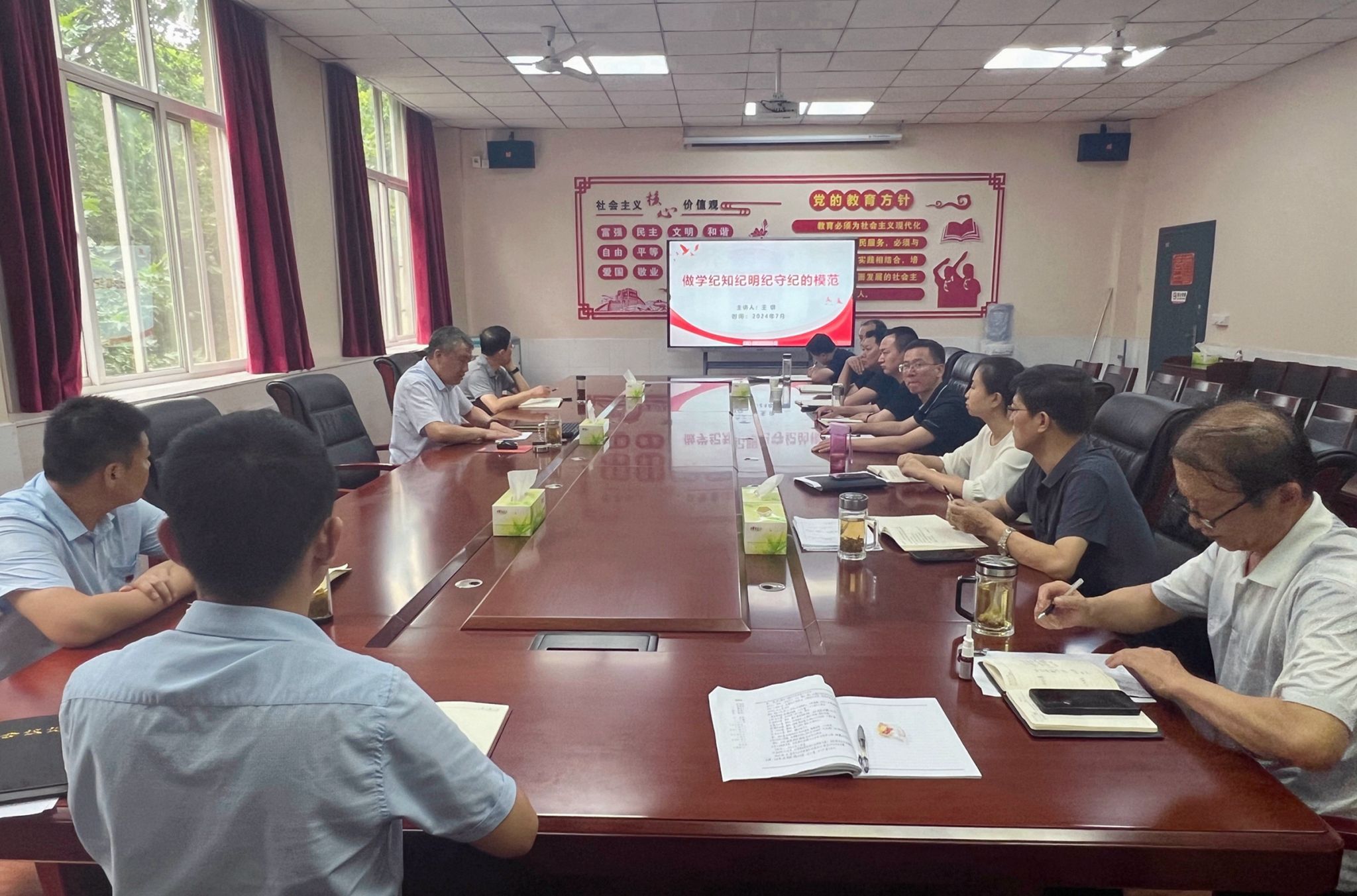 附中党委书记、校长王琪面向附中班子成员、党委委员及各部门主要负责同志作了题为《做学纪、知纪、明纪、守纪的模范》的专题党课,他围绕附中中心工作,结合自身学习体会,从“深刻领会加强党的纪律建设的重要意义”“深入学习贯彻《中国共产党纪律处分条例》”“把纪律规矩转化为政治自觉、思想自觉、行动自觉”三个方面展开讲解。他指出,党员干部要深刻认识党纪学习教育的重要性,准确把握“六项纪律”的主旨要义和规定要求,做好“当下事”,当好“带头人”,锚定“长远事”、当好“自律人”,真正让党章党规党纪内化于心、外化于行,以“久久为功、善作善成”的韧劲,实实在在的工作成效检验党纪学习教育成果,在推动附中高质量发展上展现新作为。