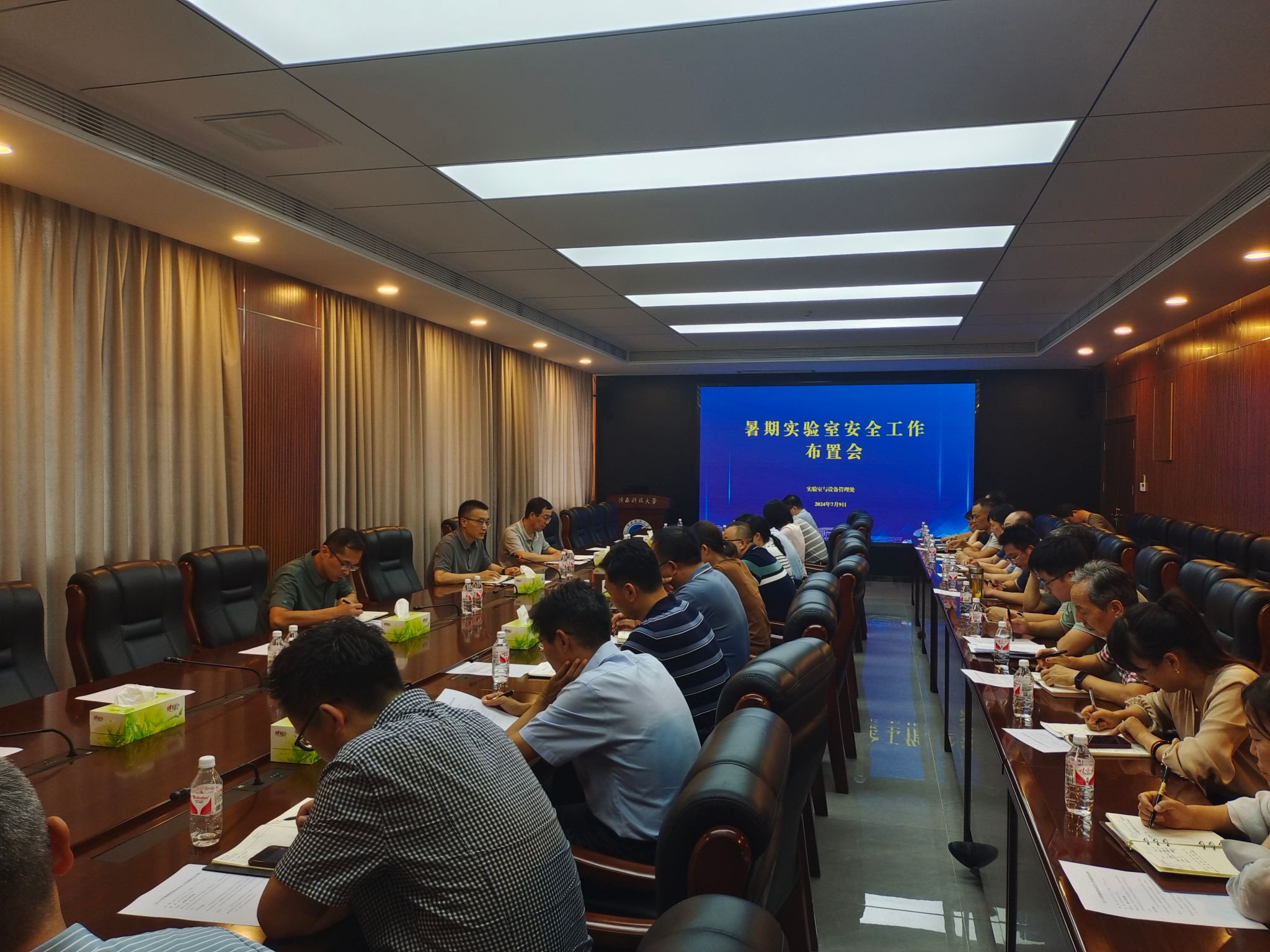 最后,费贵强强调一是各单位要提高政治站位,切实做好暑期前实验室安全检查及暑期实验室安全工作。二是管安全决不能有官僚主义和形式主义作风,要深入一线,不能坐办公室管安全。三是各单位要做好实验室安全制度宣讲工作,传达到每一位师生,要讲到、要讲细、要讲明。希望大家携手努力,筑牢实验室安全防线,共创平安稳定和谐校园环境。
