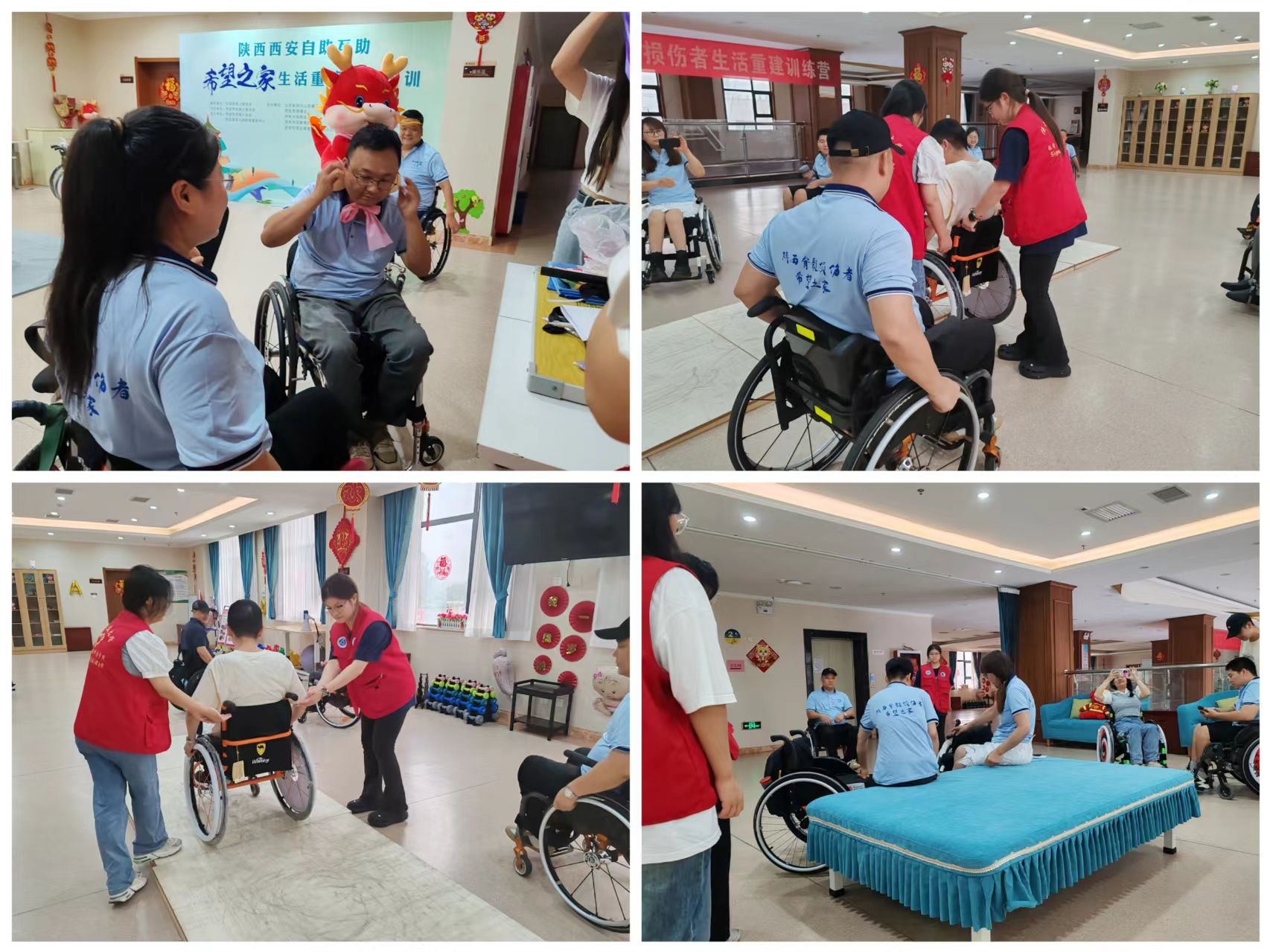 数学学院匠心残韵社会实践团于7月16日前往西安市蓝田县好思达康复中心开展为期一周的暑期“三下乡”社会实践活动。社会实践团队主要通过协助西安莲湖九州助残服务中心和西安市肢残人协会,组织趣味活动、交流分享会、志愿帮扶等协助残疾人复健,调研采访了解残疾人的生活状态及目前遇到的困难和问题,通过相关知识技能培训,掌握如何用科学的方式保护残障人士上下楼梯、轮椅、床以及沙发转移、跨越障碍物等,深入了解了残疾人在日常生活及出行中的艰辛与不易,录制相关帮扶视频,宣传引导公众遇到残疾人求助时应主动伸出援手,提供专业帮扶,将助老爱老践于行。