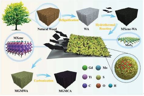 功能复合材料、先进陶瓷材料领域:团队以木材为原料构建出高性能的MoS2@Gd2O3/Mxene负载多孔碳气凝胶复合材料,表现出优异的电磁波吸收性能,为开发高性能、可持续的多功能生物质材料开辟了一条新途径。团队与蒙娜丽莎集团股份有限公司合作,开展了建筑陶瓷薄型化的增强、增韧技术研究,使得陶瓷薄板的抗弯强度超过240 MPa,较改进前提升了20%,攻克了陶瓷领域的技术性难题。