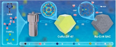 新型氯氮共配位钌单原子电催化剂合成示意图