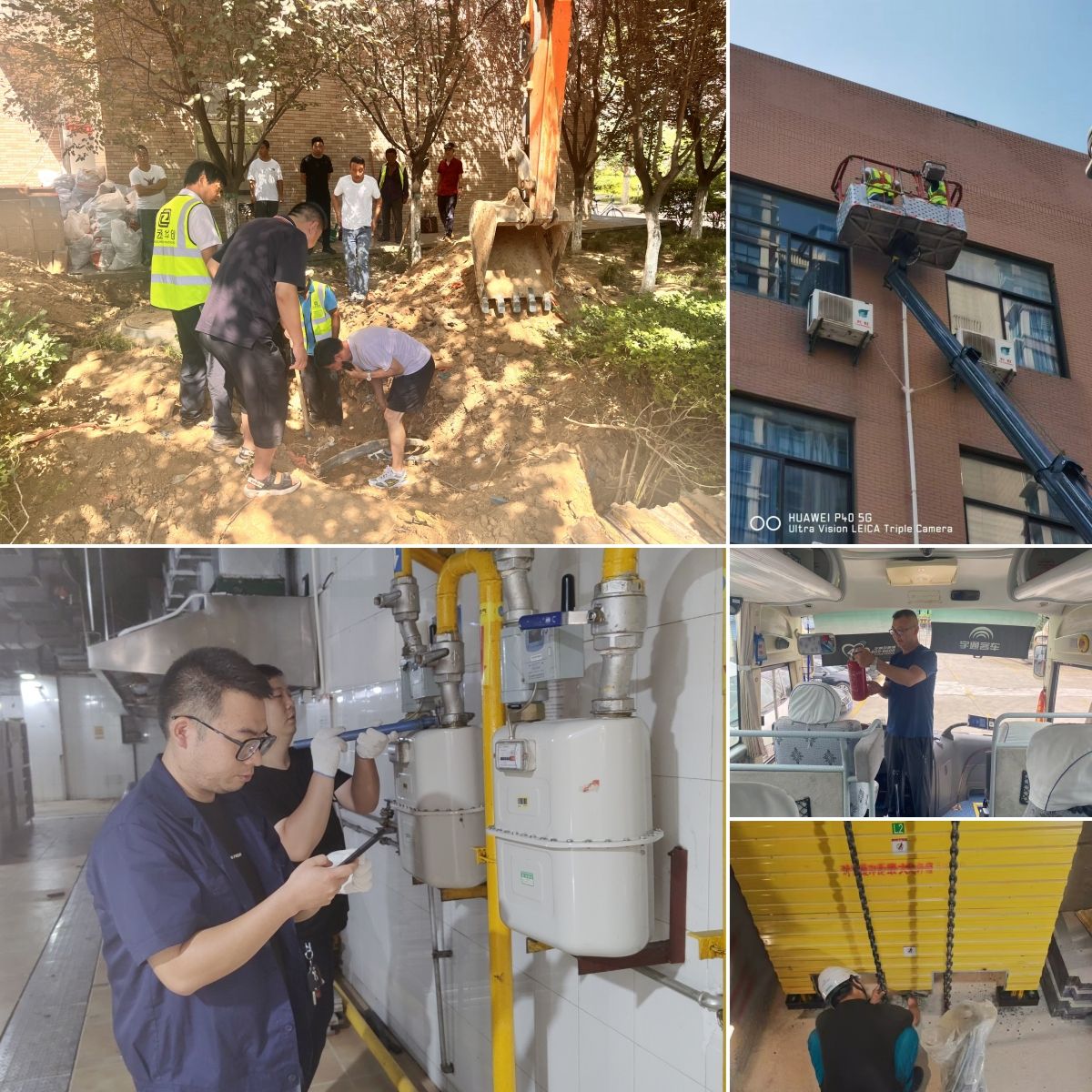 坚守底线,安全稳定放首位。集团始终将安全稳定放在第一位,严格落实各项安全管理制度,严格值班值守,常态化做好日常安全检查督查,科学调整高温天气室外作业时间,先后对校内6台变压器及部分高压电缆进行耐压、绝缘预防性试验,合理规划校园和沁园小区电动自行车充电桩区域建设,时刻关注食品安全、燃气安全和生产安全,确保各项工作顺利开展。