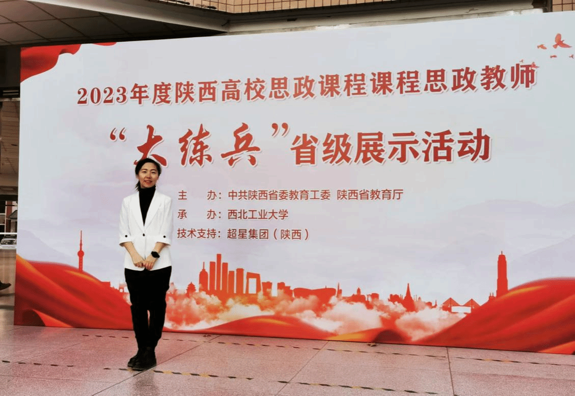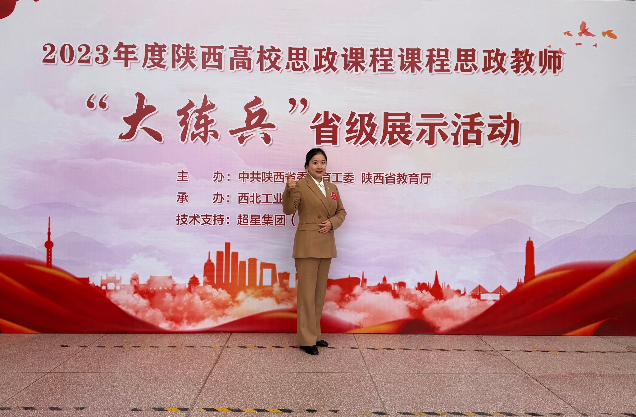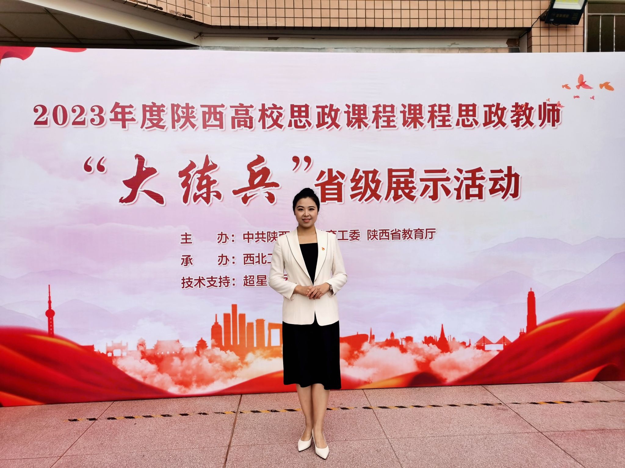 在2023年陕西高校思政课程课程思政教师“大练兵”中,我积极备赛,精心准备,反复打磨,将平时的教学心得和经验融入到比赛中,取得了“教学标兵”的荣誉称号,这也是我践行教育家精神的一个收获。