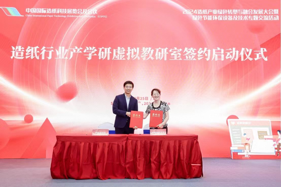 9月25日,在“2024造纸产业绿色转型与融合发展大会”上,教育部首批轻化工程专业虚拟教研室负责人、德赢官网张美云教授与中国制浆造纸研究院常务副总经理田超在武汉国际会议中心共同签署了共建虚拟教研室的合作协议。双方的战略合作有利于充分发挥国家级专业媒体和高等院校联合体的资源优势,有利于深化产、学、研一体化的人才培养模式改革,有利于为造纸行业培养有创新意识高素质的工程技术人才。