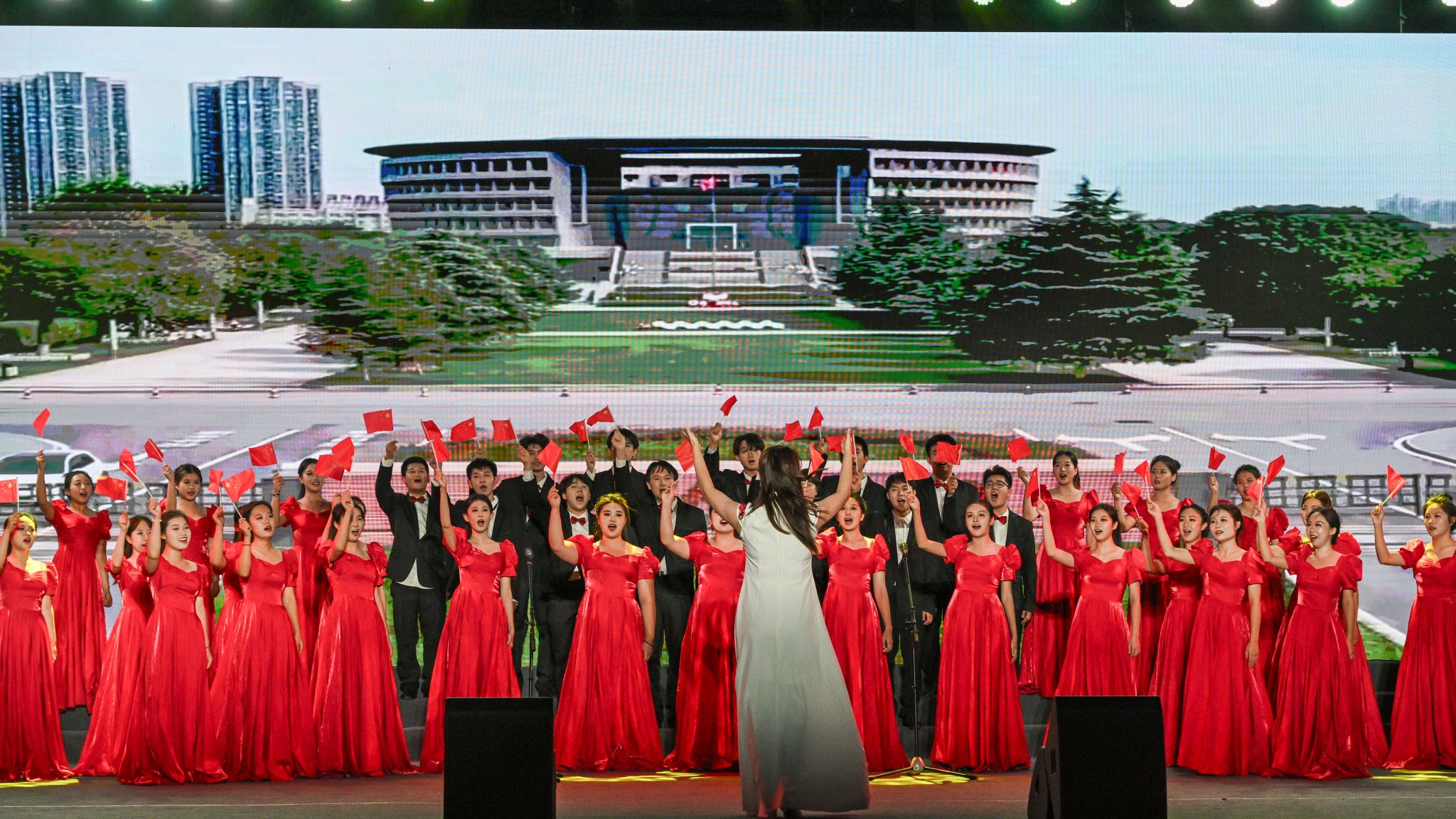 第三篇章“强国有我”中,舞蹈《海舞潮歌》中以情感为灵魂,以民舞的艺术形式演绎着文化的传承和表达;歌曲《青春站位》由退伍大学生士兵和国旗护卫队学生演出,生动展示了“有为青年,参军报国”的青春风采。校歌《远航》、《歌唱祖国》将晚会推向了高潮,强基固本、蓄势赋能,新征程上,奋发向上的科大人将不忘初心,赓续前行,在学校第三次党代会精神的指引下,在投身教育强国建设,推动学校高质量发展的征程上远航!
