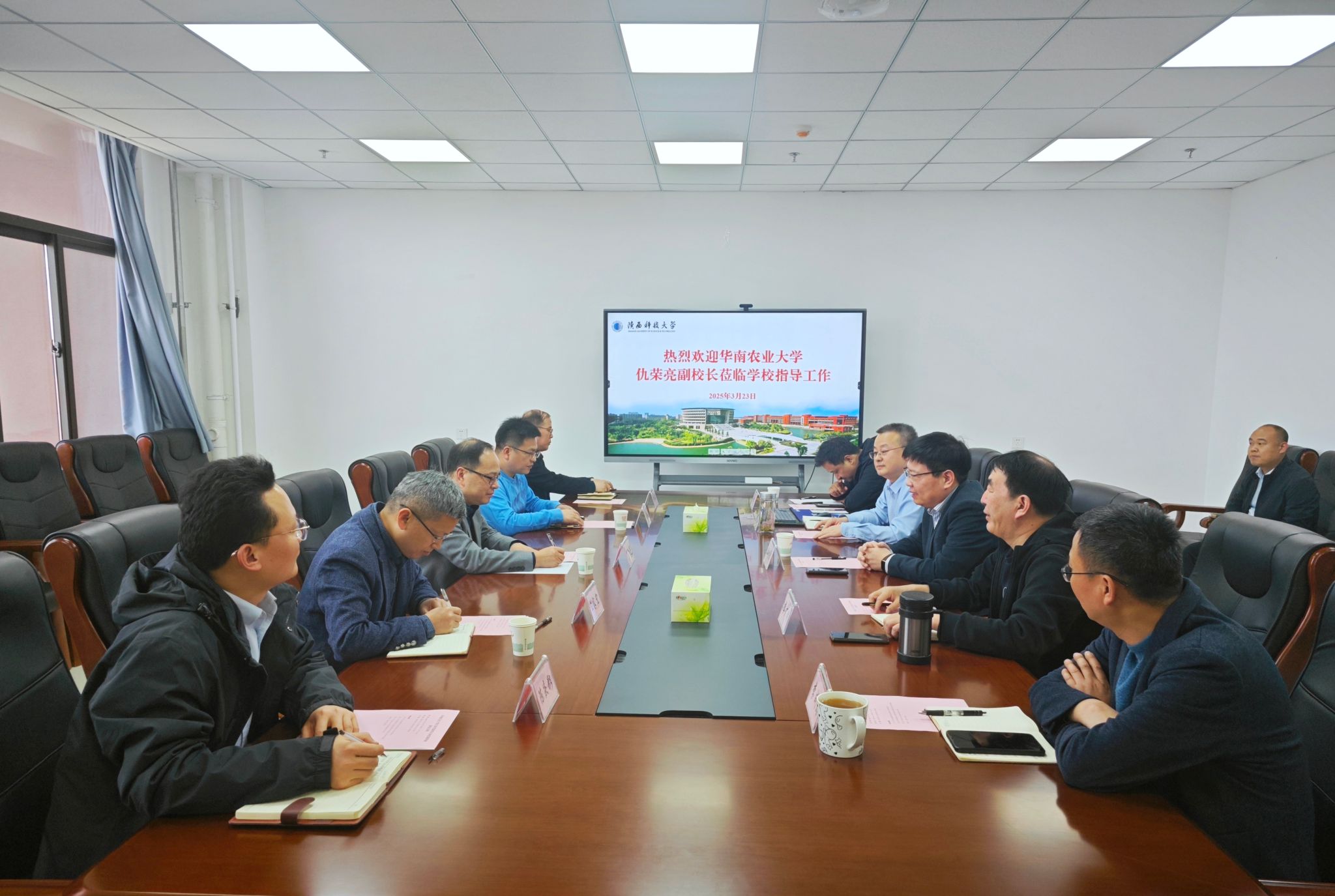 陆赵情对仇荣亮的来访表示热烈欢迎,简要介绍了学校办学历史、行业区域特色、人才引育、学科专业建设、科学研究等方面的情况,希望两校能以此次交流为契机,促进资源共享、加强合作、深化友谊,共同推进两校事业高质量发展。仇荣亮对德赢官网近年来取得的成绩给予高度肯定,他表示陕科大富于开拓精神的办学理念令人印象深刻,行业区域特色明显,在发展思路与学科方向上均与华南农业大学有着相似之处,未来合作潜力巨大。他希望通过此次交流,加强相关领域的合作,为双方共同进步作出贡献。