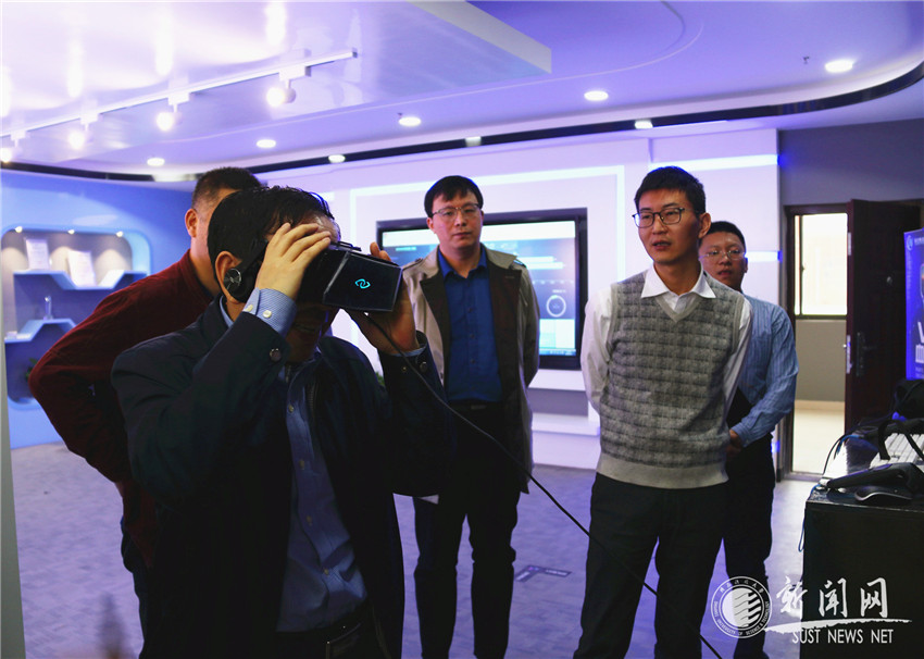 姚书志、温锋还实地考察了易班发展中心,现场听取了思政大数据、易班轻应用、VR思政等项目建设情况汇报,并现场体验了VR。