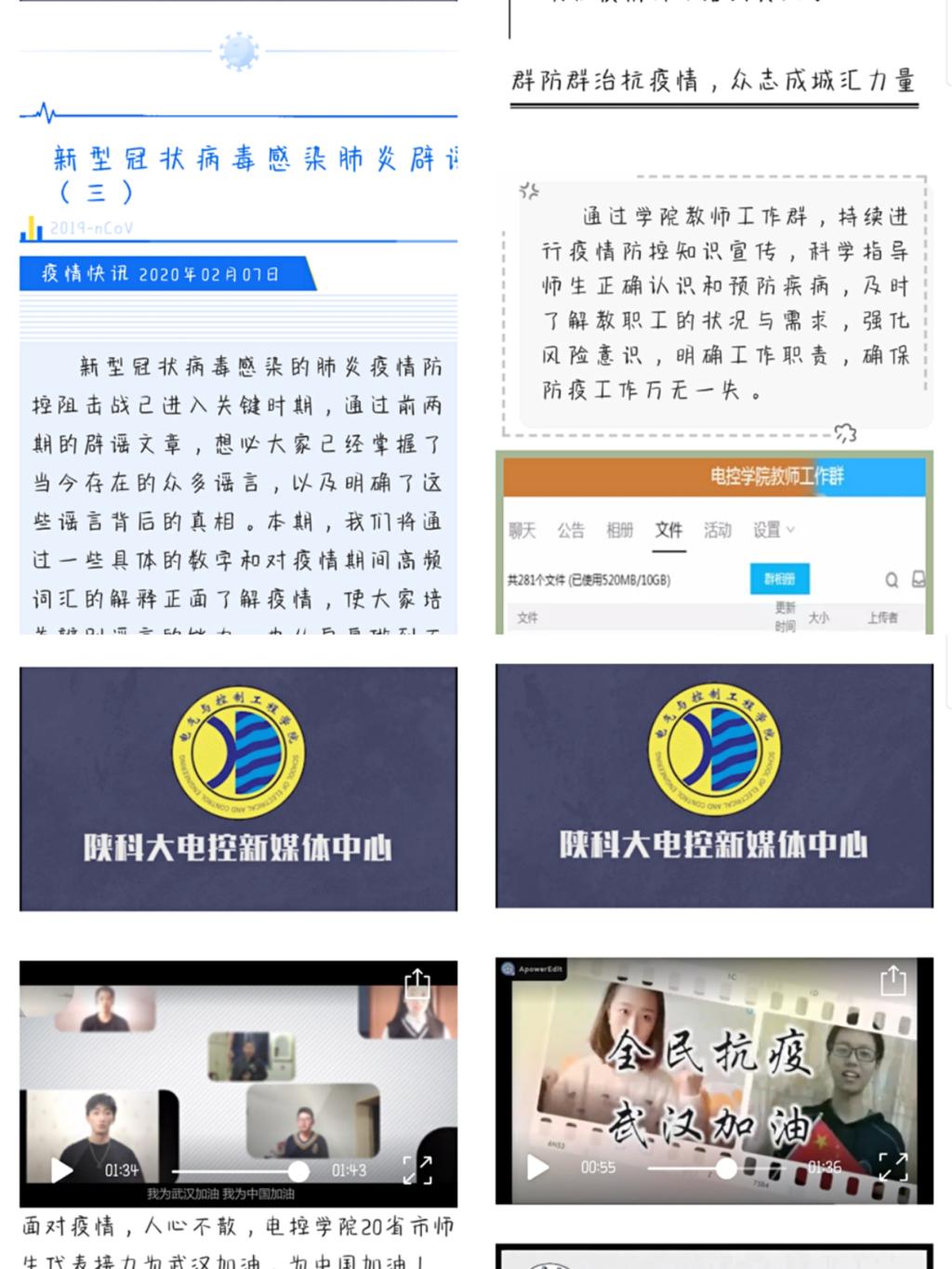 在抗击新冠肺炎疫情期间,学院宣传平台积极引领,主动发声,及时传达中省及学校相关文件要求,引导全院师生客观认识疫情、科学预防疫情、冷静应对疫情。学院运用“點语箜声”公众号、学院官网、微信、QQ、易班等多媒体平台不断正面发声,传播疫情防控知识,学生党团支部拍摄“我为武汉加油”等助力抗疫视频,积极宣传在抗疫中的党员团员师生典型,设立辅导员专栏撰文做好学生心理疏导和就业指导,研究生导师、毕业生联系教师、全体辅导员保持与学生的密切联系,宣传引导学生正确面对疫情,科学做好自我防护,切实落实“不提前返校”的号召倡议。