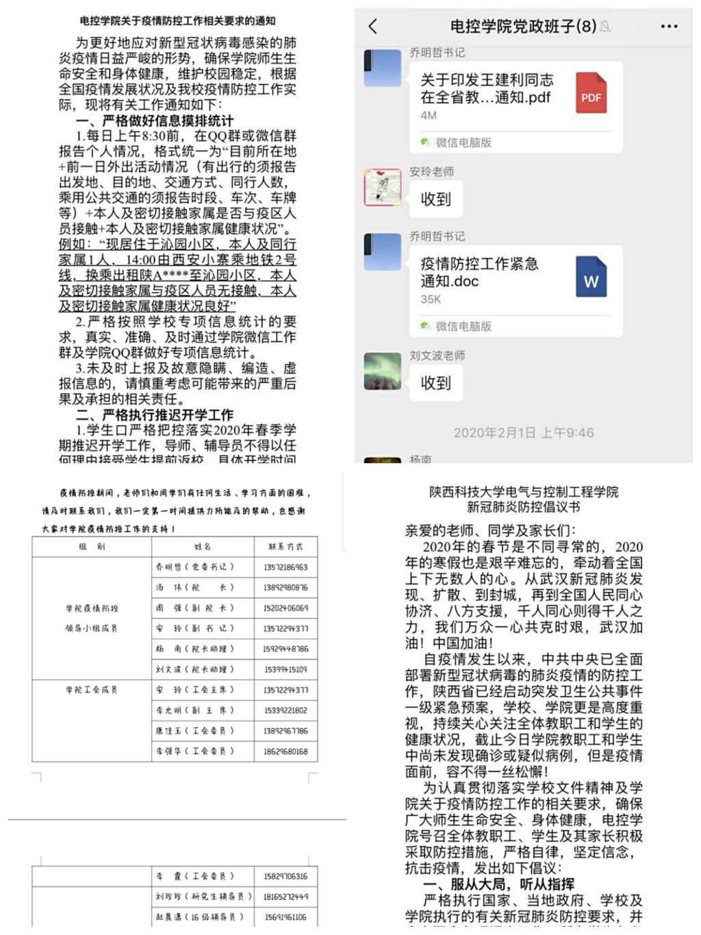 新冠肺炎疫情防控工作开展以来,电气与控制工程学院党委按照学校安排部署,第一时间采取行动,多措并举,把疫情防控作为当前重大政治任务,确保疫情防控各项工作落实到位。