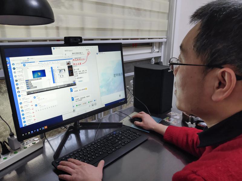 谭敏强是高中物理教研组长、高三物理教师,在得知附中要开展网络直播授课后,他凭借过硬的业务能力主动请缨,第一时间就投身到了紧张的筹备工作之中。谭敏强反复尝试、筛选多种线上教学软件,积极搭建网络平台,导入附中7000余名师生的数据信息,为附中教师进行网络直播授课技术培训,并耐心解答每位老师提出的问题,有时一忙就是连续多天。为了保证高三年级率先开展网络直播授课的需要,谭敏强连续三天埋头工作,有时都顾不上吃饭,到了深夜还在加班加点,将一组组的数据信息准确无误地导入系统。在高三年级网络直播授课顺利开展后,谭敏强又开始为其他年级教师的技术培训工作而奔忙。同事们纷纷称赞他是网络技术方面“只管付出,不问索取”的清障人。