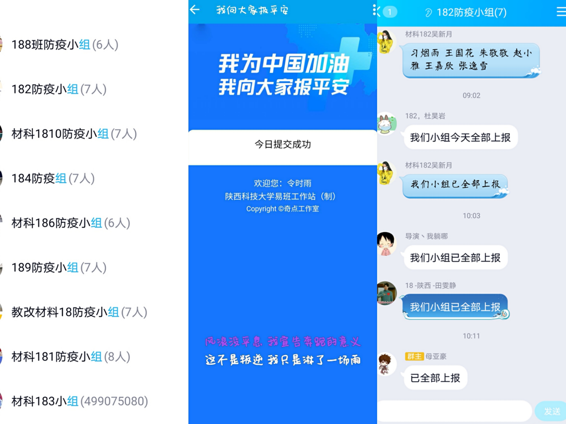 材料学院严格落实学校师生健康数据台账相关规定。学院形成“学院—系室(年级)—教师(学生)”三级工作机制,压实系(室)主任、团队负责人、辅导员、党支部书记的防疫工作责任,按照“校内校外、湖北省内省外、接触非接触、身体正常或异常、隔离非隔离”等类别进行有效核实,及时将各项防疫安排通知到每位师生,形成“一类一策”、动态管理,确保传达不漏一人、统计不错一人。特别是辅导员通过班团两委、党员、入党积极分子等组成班级防疫小组,以宿舍为单位逐一对接联络,引导全院学生通过易班日报、晚点名掌握学生及家属健康情况。目前学院师生1950余人健康状况良好,为学院防疫和复学工作奠定了基础。