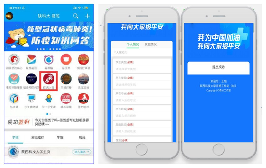 1月22日,学工部通过易班、陕科大学工部官方微信公众号推送《关于新型肺炎,科大师生支持请转》,第一时间号召全体师生加强防范,该条推文获得7000+浏览。随后,上线“共克时艰,并肩战疫”轻应用、“易抗亿扛,携科战疫”、“携科战疫,科学防护”等优课课群,每日更新疫情相关动态、防护知识和学校疫情防控各项工作通知,引导学生积极应对疫情,坚定必胜信念;开展“新型冠状病毒肺炎防控知识问答”活动,累计超过35万人参与知识问答,产生了良好的社会效应。