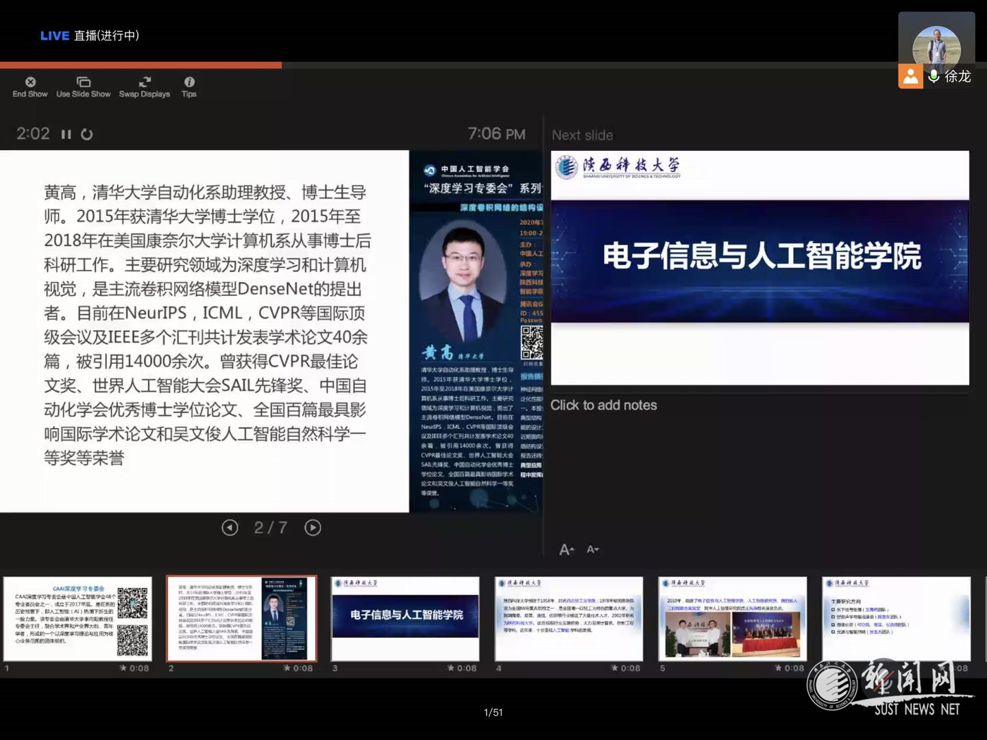 为推动深度学习研究及应用,中国人工智能学会(CAAI)深度学习专委会主办“深度学习专委会云论坛”系列活动。德赢官网电智学院及人工智能研究院应邀承办“深度学习专委会云论坛”7月17日晚举办的首期论坛,邀请清华大学黄高助理教授做题为“深度卷积网络的结构设计(Deep Convolutional Network Architectures)”的前沿科学报告。电智学院教师及部分研究生参加了在线学术论坛。