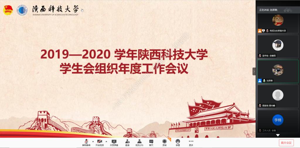 7月27日,2019—2020学年德赢官网Vwin学生会组织年度工作会议(以下简称学生会组织年度工作会议)以线上会议的方式成功举行。研工部副部长陈李斌、学工部常务副部长张凯凯、校团委书记李鹏、校团委及各学院团学工作代表、德赢官网Vwin学生会、研究生会负责人及各学院参会人员代表、学生会及研究生会主席团候选人、第三届大学生骨干培训班全体学员,研工部及学工部的相关工作人员,以及来自兄弟院校西安工业大学、西安医学院的学生会组织主席团成员出席会议。大会由校团委组织部部长陈诗南主持。