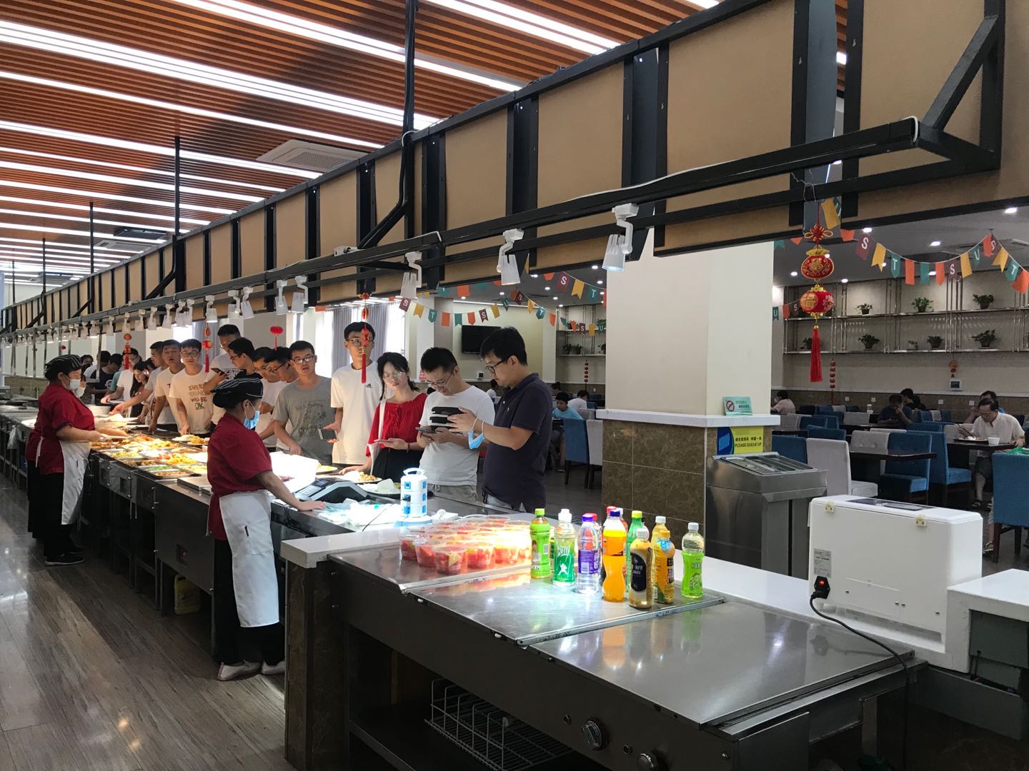 暑假天气溽热,校园餐饮服务却不打折扣,饮食服务中心为保障数千名留校师生的餐饮需求,由馨园餐厅精心备餐、热情服务,馨园一层风味餐厅17个档口全部营业,二楼自助餐厅周一到周日每日菜品不重样,一日三餐为师生供应营养健康、口味丰富的餐品。
