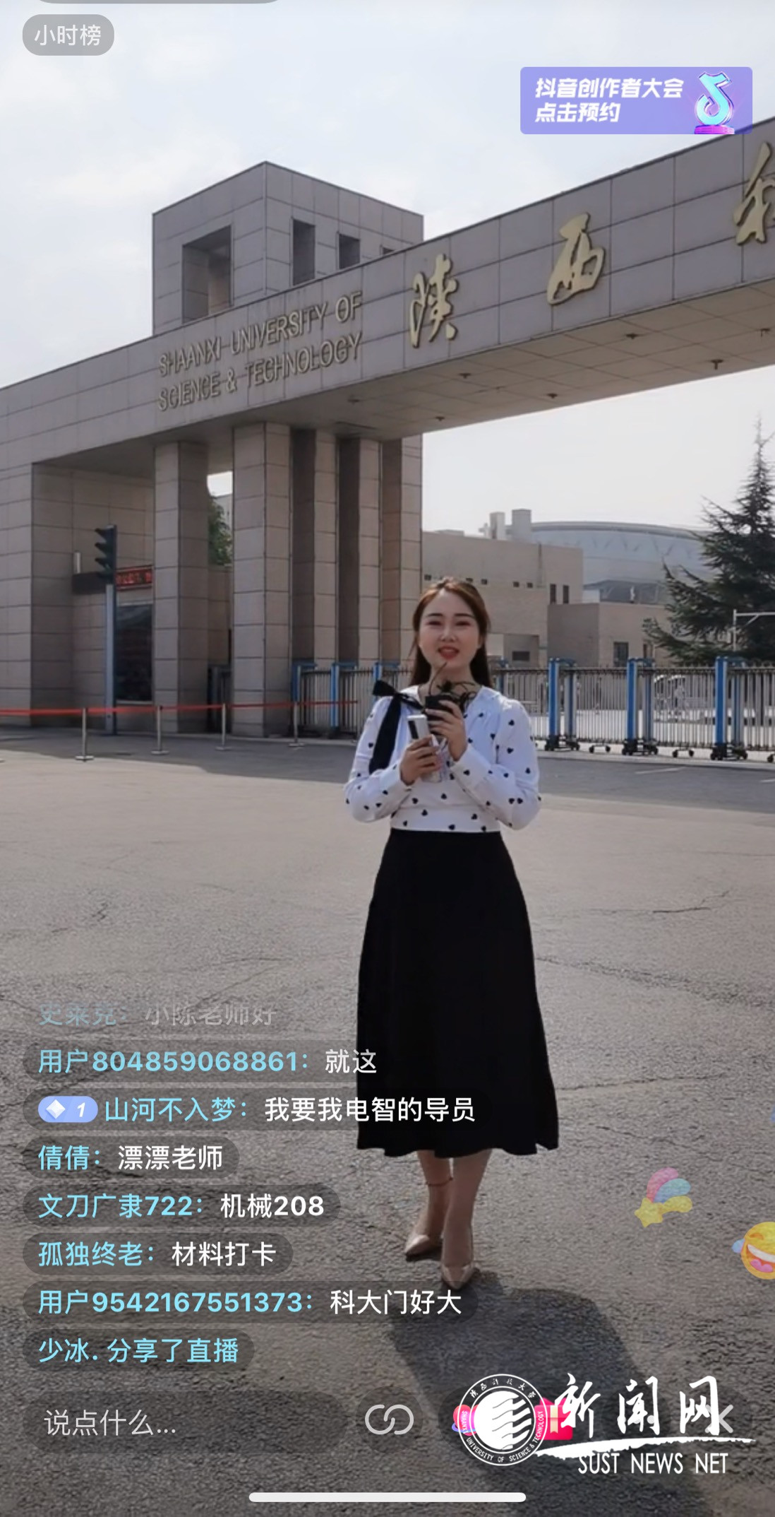 “大家好,这里是德赢官网Vwin,欢迎大家来到‘新同学,我们在科大等你’的直播间,我们是2020级新生辅导员,今天,由我们带大家云游科大校园!”9月8日,由14名新生辅导员组成的主播团队带领尚未入校报道的新生们在校园里“走一走,瞧一瞧”,依托“陕科大易班”抖音公众号在直播间为大家提前开启大学生活。