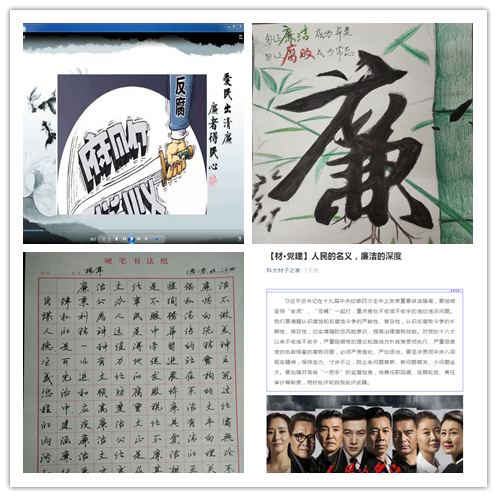 一是组织干部积极参加“知廉洁、严纪律”党纪法规知识测试,并达到良好以上成绩,各系室主任、学生党员干部等也积极参与测试活动,以考促学、以考促廉。二是开展“知敬畏、明底线”廉洁文化作品征集活动,各党支部和党员积极投稿,共收到书法、视频、手抄报、心得体会等12个廉政文化作品。三是注重将氛围营造贯穿整个纪律教育学习活动,截至目前通过官方微信公众号“科大材子之家”相继推出系列师德失范问题典型案例、正反面典型人物事例10篇,教育引导师生党员自警自省、主动作为。