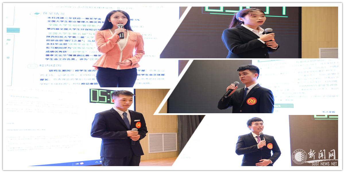 本次大赛历时45天,20位指导教师精心辅导,9位校外专家专业评审,2573名学生经过海选面试、赛前培训、院系推荐、初赛遴选,复赛无领导小组讨论比拼,最终共产生12位选手晋级决赛。决赛由选手VCR个人风采展示、自我介绍和压力面试三个环节组成。比赛采用模拟招聘的形式,每位选手在规定时间内结合VCR和个人简历,通过自我陈述的方式从职业定位、岗位认知、校内外实践实习经历、各类竞赛、荣誉奖励等方面进行综合能力的展示,评委根据选手的陈述情况进行现场提问和压力面试。