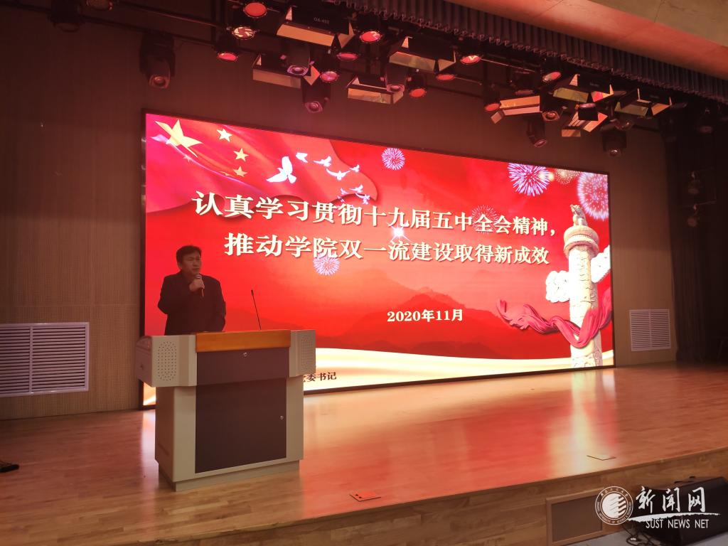 杜致博围绕《中国共产党第十九届中央委员会第五次全体会议公报》,结合习近平总书记来陕重要讲话精神,结合国际环境和社会热点问题和推动建设高质量教育体系,带领大家进行了学习。杜致博指出,党的十九届五中全会是在两个“一百年”奋斗目标的历史交汇点上召开的一次重要会议,全会重点研究了“十四五”规划和2035年远景目标问题,肯定了“十三五”取得的显著成绩,深入回答了当前和今后一个时期我国经济社会发展的一系列重大问题,对高校参与建设教育强国、文化强国具有十分重要的指导意义。