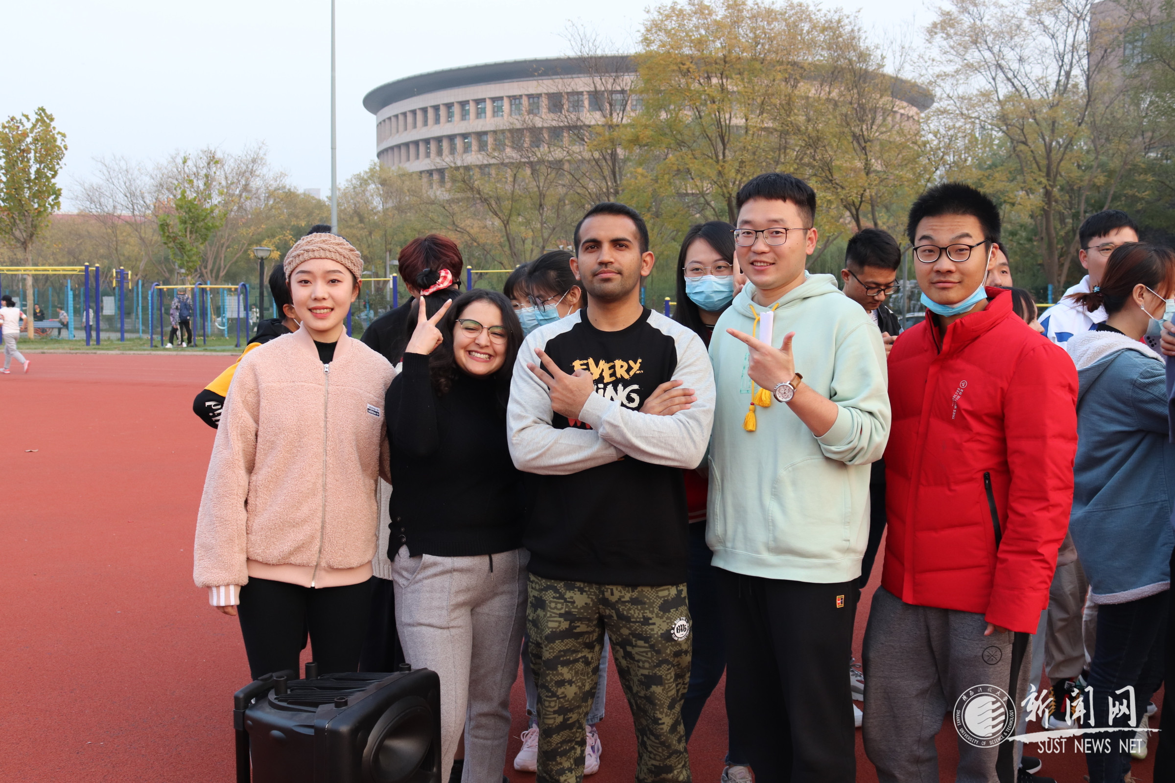 本次团建交流活动通过随机分组,采用团队积分形式开展“穿针引线”、“敲锣打鼓”、“同舟共济”等活动。来自孟加拉国的Mohammad Al Masum迅速融入团队,用流利的英语同组员讨论如何高效配合进行活动。在遇到语言沟通困难时,组员们各显其才,来自巴基斯坦的Khaqn Sarvar Alvi采用普通话与组员交流起来,成型181韩少君将英语和肢体语言充分结合同留学生们互动着。各组学生采用英语交流、汉语互动、手势引导等方式顺利配合完成各环节活动。