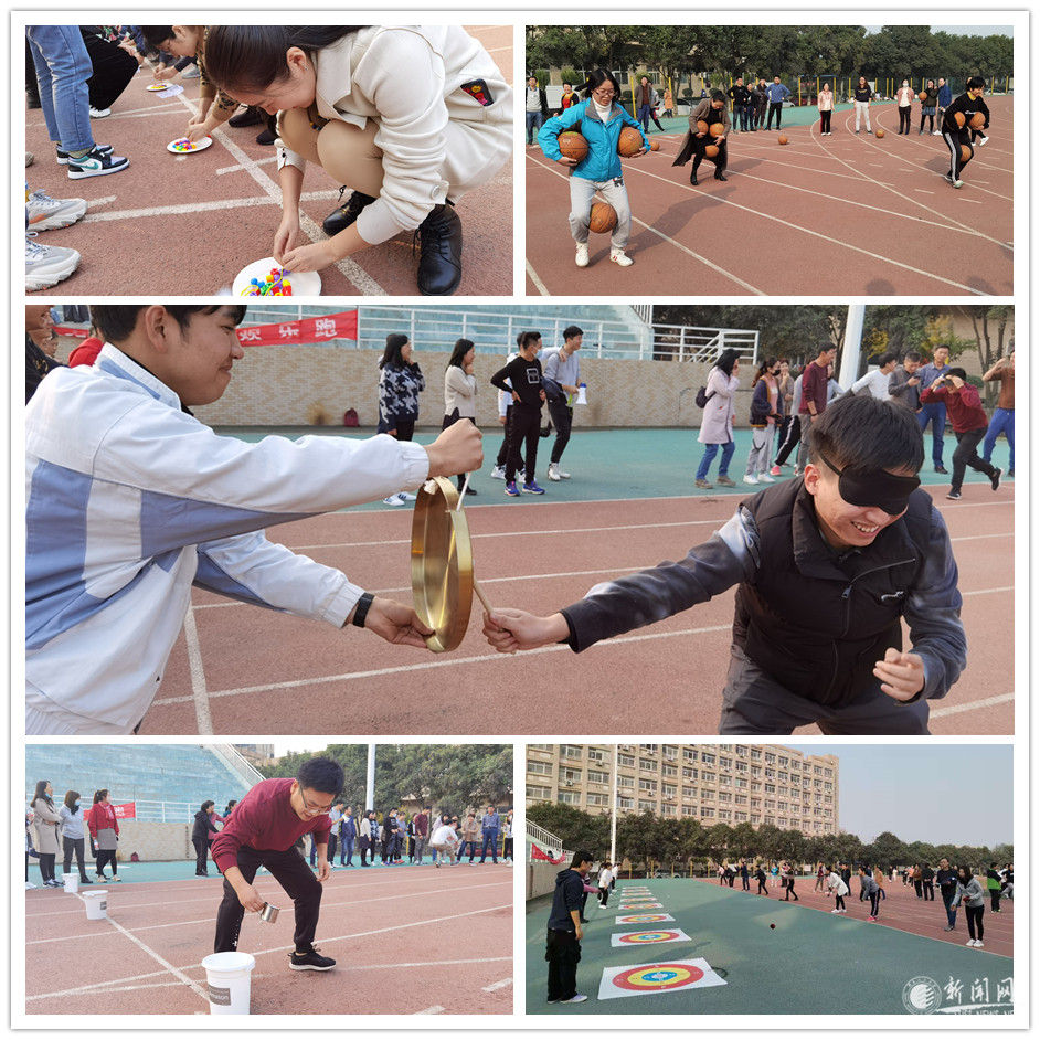 11月12日下午,由机关工会组织的2020年教职工趣味运动会在标准田径场顺利举行。运动会比赛设有掷沙包、企鹅漫步、串“珍珠”三项个人项目和“盲人”敲锣、盛水接力两项集体项目,有速度的比拼、有精准度的较量、也有团队协作的考验,设计别出心裁,比赛妙趣横生,掌声不断、欢笑不断,在增进友谊、锻炼身体、增强体质的基础上,进一步丰富了机关教职工的文体生活。