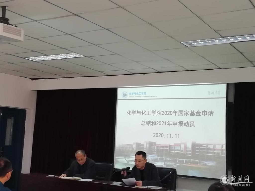 11月11日下午,化学与化工学院在实验楼1A302召开2021年国家自然科学基金申报动员大会。学院班子成员及全院教师参加了会议,会议由院党委书记张岩主持,邀请科技处处长杨军出席并作报告。