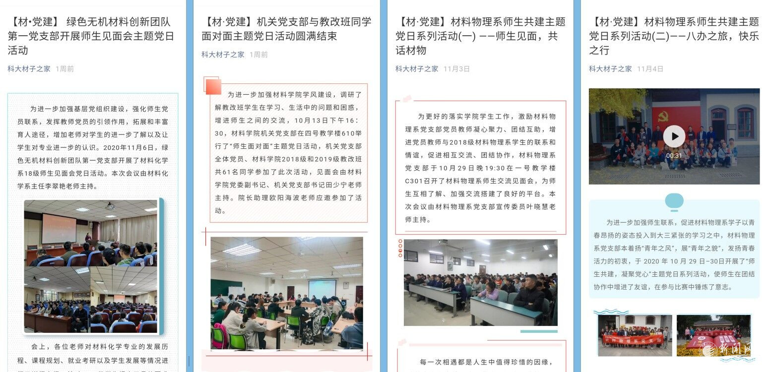学院积极搭建平台,协同党建和专业教育资源,持续开展师生支部“面对面”系列主题党日活动,将党建工作与学生教育深度融合。材料物理专业党支部以“师生见面、共话材物”为主题召开两场别开生面的师生见面会,机关党支部紧扣学业分析和经验分享两个主题积极回应学生关切,无机非金属专业党支部以“琢玉为才、金石为开”为主题开展师生交流党日活动。截至11月23日,材料学院共开展师生“面对面”活动6场,涵盖所有专业党支部,有效协同包括二三级教授、教学副院长、教学秘书等在内的广大党员、专业教师、思政队伍、教辅人员的合力。