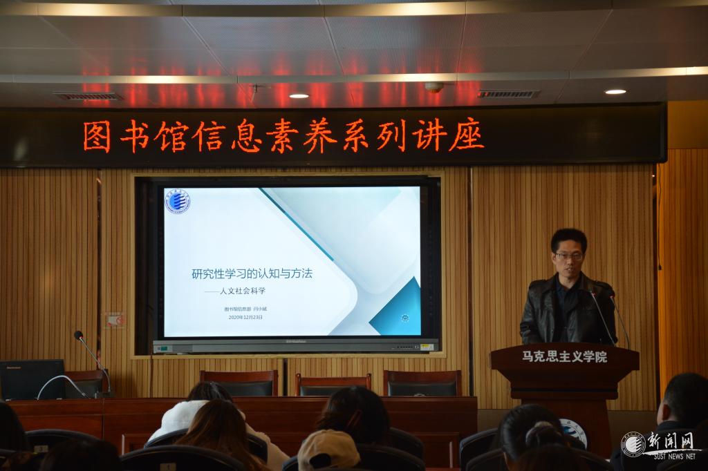 为提升图书馆馆藏资源利用率,助力师生教学科研质量再上台阶,图书馆从师生实际需求出发,制定信息素养培训计划。在前期充分沟通的基础上,12月23日一场针对马克思主义学院研究生信息素养提升的专题讲座在人文楼1014学术报告厅举行。此次讲座由图书馆信息咨询部杨宇环、闫小斌两位老师主讲。图书馆信息咨询部全体老师和马院2019、2020级研究生参加了讲座。讲座由马院院长助理孔庆金主持。