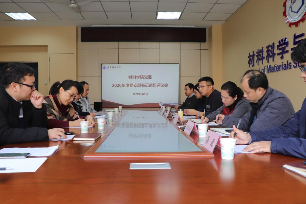 按照校党委关于开展基层党建述职评议考核工作的部署要求,材料科学与工程学院党委于1月5日召开2020年度基层党支部书记述职评议会。学院党委书记杨长安出席会议并点评讲话,副书记田少宁主持会议。
