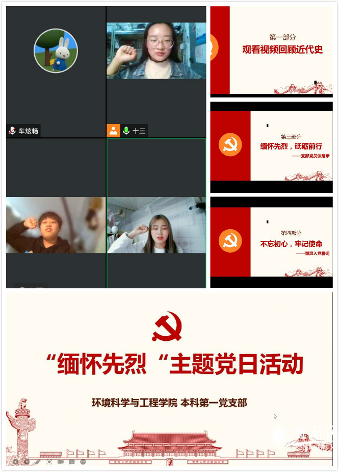 为学习英雄事迹,弘扬英雄精神,传承红色基因,教育引导广大党员从党的百年伟大奋斗历程中汲取继续前进的智慧和力量,不断增强党员理想信念和宗旨意识,清明节期间,环境学院采取线上线下相结合的方式,积极开展“清明祭英烈,初心永不忘”主题党日活动。