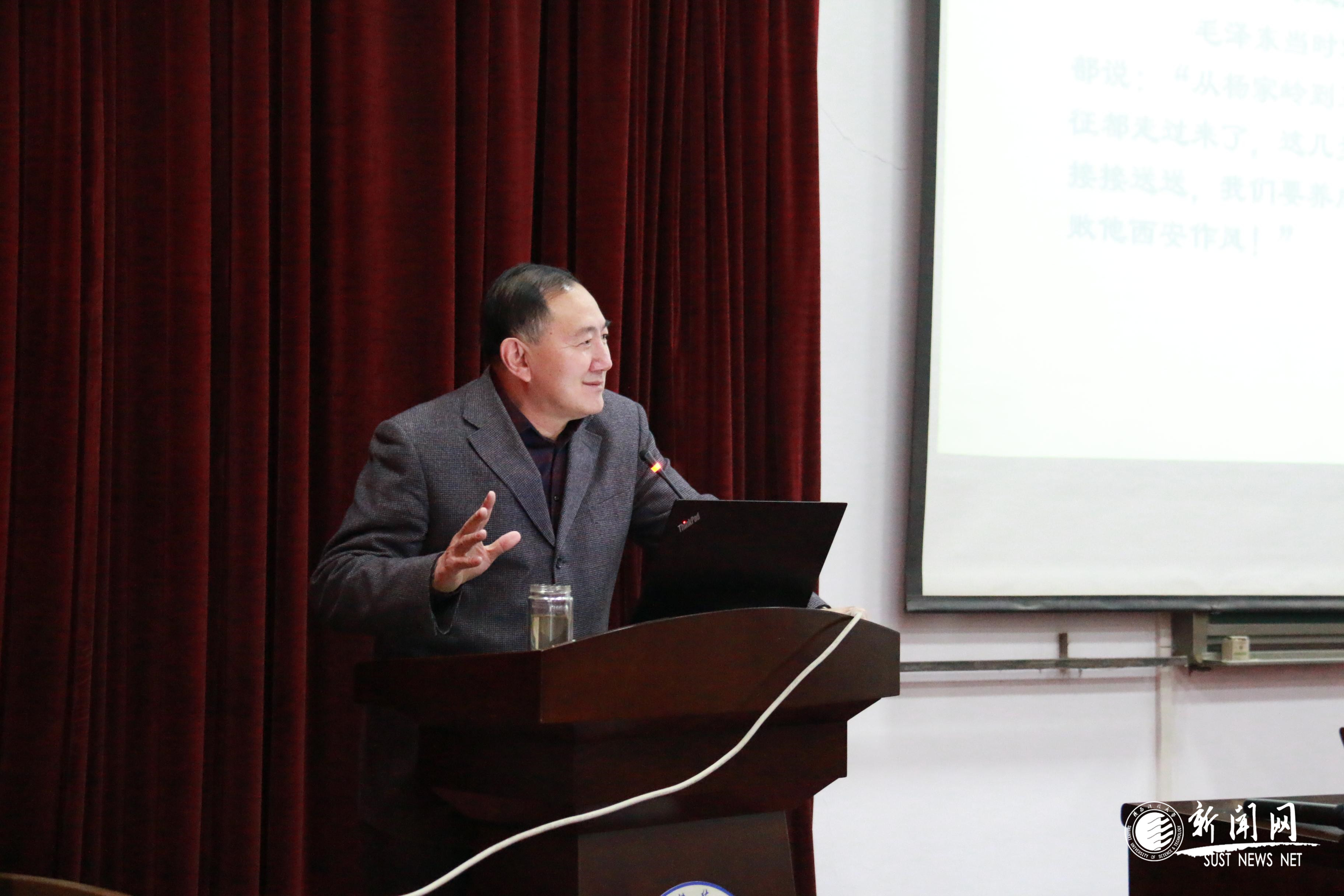报告会上,张建儒教授从延安精神的概念提出、产生基础、形成过程、主要内容和时代价值等五个方面,对延安精神及其时代价值进行了全面系统的讲解。通过讲述详实的历史史实和生动的党史故事,著名华侨陈嘉庚重庆和延安考察不同观感对比,斯诺、斯蒂尔、斯特朗等外国记者的采访记录和回忆评价等多种方式,向师生全面讲解了延安精神的灵魂、精髓、本质和特征,重点阐述了延安精神原生形态中的抗大精神、延安整风运动精神、南泥湾精神、白求恩精神、张思德精神、劳模精神等内容。最后,他希望同学们自觉地将延安精神内化于心、外化于行,并且同新的时代精神相结合,把个人价值的实现融入到报效祖国、服务人民的实践中,力争做出无愧于时代、无愧于人民的工作业绩。