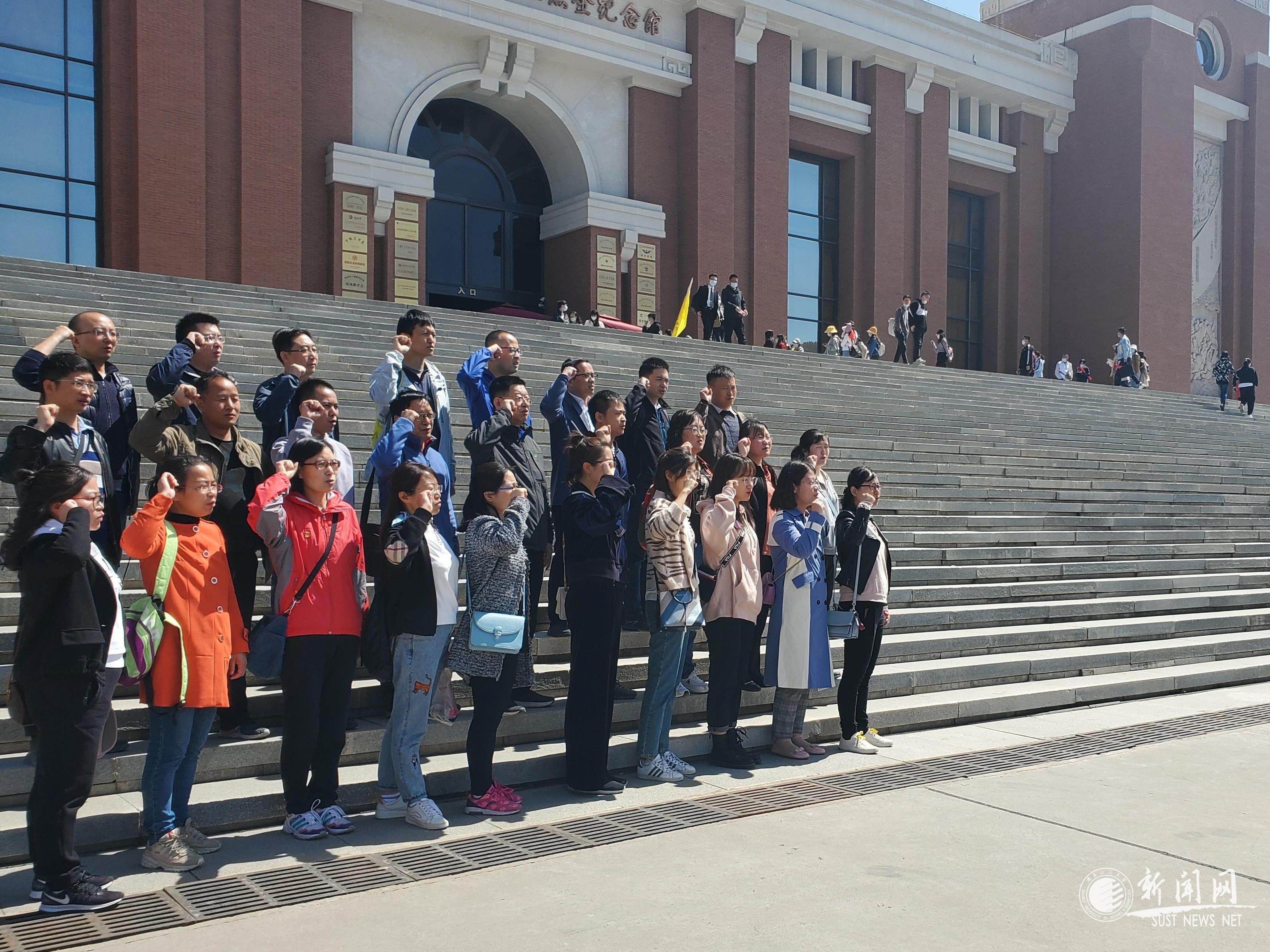 在照金纪念馆聆听老一辈革命家与党和人民一起建立党的基层组织、建立红色政权、建立群众武装的英勇事迹后,全体党员庄严肃立,面对党旗重温入党誓词,大家以铮铮誓言表达向革命先辈学习的决心和为党的教育事业奋斗终身的恒心。