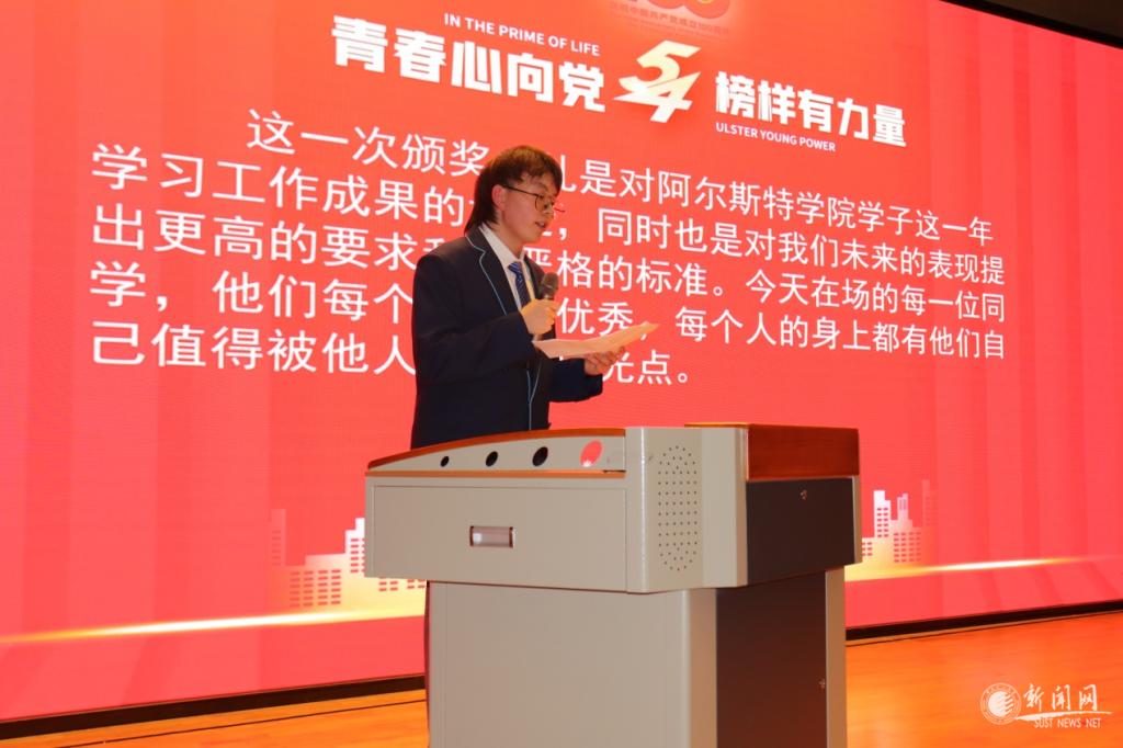 为庆祝中国共产党成立100周年,4月27日晚,阿尔斯特学院举行“青春心向党·榜样有力量”五四表彰大会。德赢官网Vwin副校长、阿尔斯特学院院长王海燕,教务处处长杨海波,财务处处长刘瑞,学工部常务副部长张凯凯,校团委书记李鹏,招生办公室主任王志东,国际处副处长刘雨凡以及阿尔斯特学院班子成员出席大会,教学督导、教师代表、学院全体工作人员及学生代表参加会议。