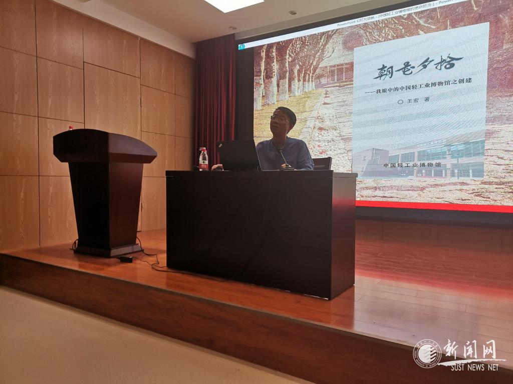 王宏从建馆的文化背景、博物馆的建设起点、博物馆的建设历程等方面入手,以自己的亲身经历生动再现了创建中国轻工业博物馆那188天艰辛而辉煌的岁月,从博物馆作为人才培养和科学研究的辅助基地、文化传承创新的载体、汇聚力量的平台、服务社会的名片、展示中华文明窗口等五大职能讲述了中国轻工业博物馆的使命和担当。同时也鼓励同学们不忘初心,牢记使命担当,勇于奉献,讲好轻工故事,传承好工业文明。