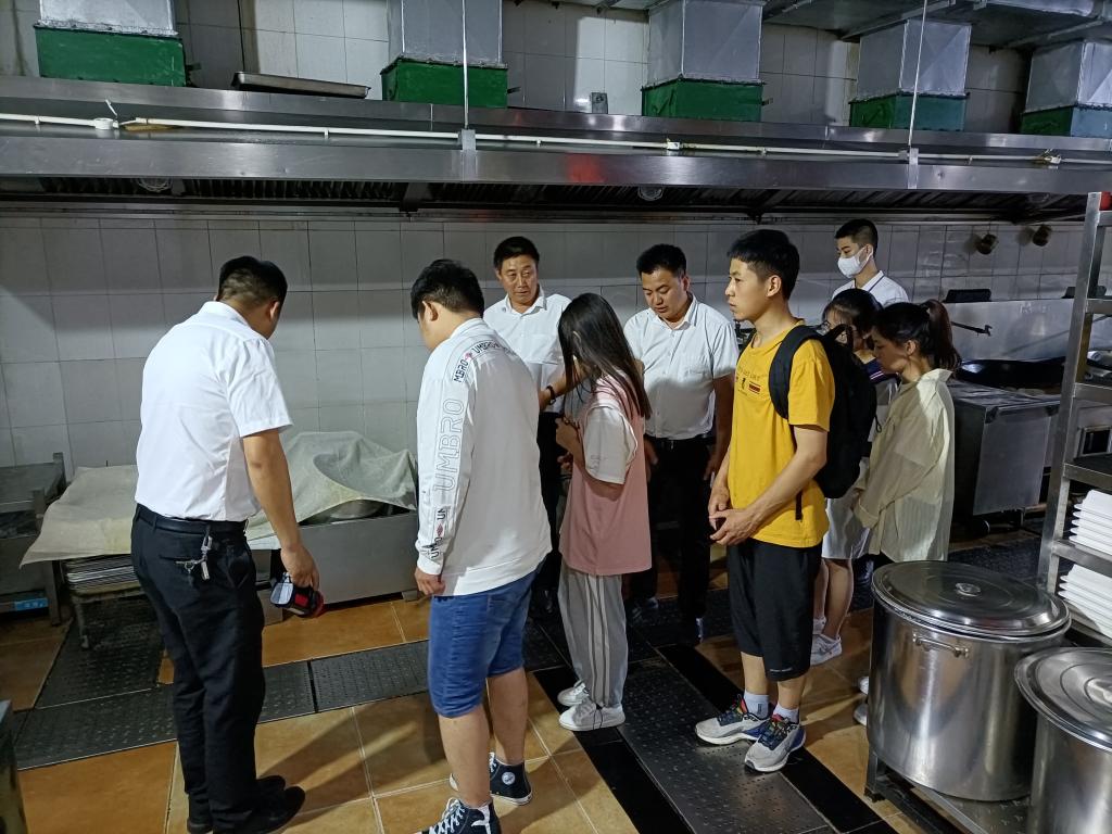 为了让学生深入了解食堂的运作及管理情况,对活动以来取得的成果进行验收,同时加强学生的食品安全意识,减少外出用餐带来的安全隐患,在饮食服务中心和学生会权益发展服务中心的组织下,通过自发报名,先后两批共11名学生代表进入食堂后厨参观。5月27日下午,在饮食服务中心韩红辉老师的带领下,5名代表认真查看了食品安全快检室、主食加工、毛菜间、烹饪间、原料仓库、餐具消毒等后厨生产加工场所。晚上,韩老师又带领6名代表跟随食堂监督组到各餐厅检查卫生和食品安全情况。参观过程中,各场所负责人详细介绍了后勤集团在食品原料采购、检验、储存、生产和加工、餐具和环境卫生方面的安全管理和监控措施。