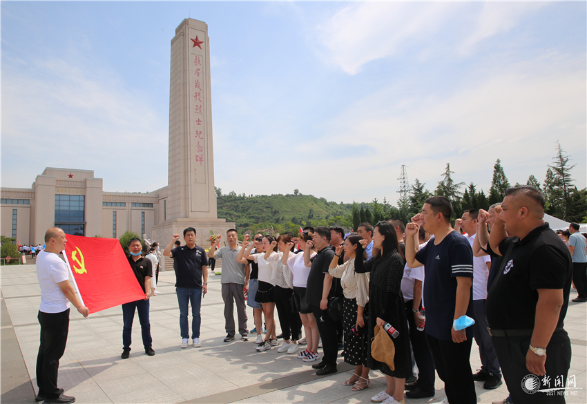 扶眉战役纪念馆位于眉县常兴镇,是为纪念在全国解放战争中西北战场上最大的一次战役——扶眉战役而壮烈牺牲的3000多名解放军指战员修建的一处革命纪念馆。整个纪念馆庄严肃穆,松柏林立,安葬着700多名烈士的忠骨。党员们先后参观了花岗岩群雕、纪念园、纪念碑广场、战役纪念馆,认真倾听扶眉战役详细介绍和革命先烈的光辉历程,瞻仰烈士遗物和文史资料,感受革命先辈们不忘初心、无私奉献、不惜牺牲的革命精神和爱国情怀。参观完毕,怀着强烈的爱国热情和对革命先烈们的崇敬之情,在庄严巍峨的“扶眉战役烈士纪念碑”前,在鲜红的党旗下,全体党员庄严地举起右手,握拳宣誓,重温入党誓词,表达对中国共产党的无限忠诚。