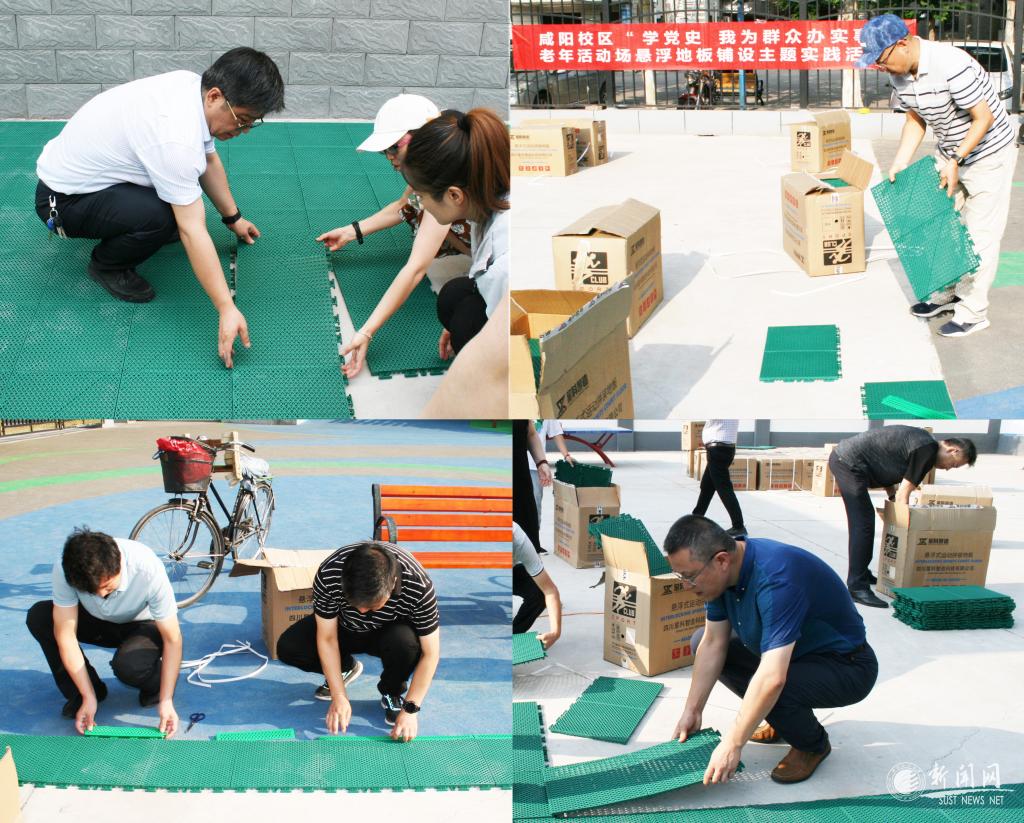 领导干部带领党员参加义务劳动。随着中心场地塑胶地面铺设的完成,咸阳校区社区服务站和和离退休互动中心共用的院子显得更加宽敞明亮、面貌一新。美中不足的是,因为项目预算限制,院子西南角羽毛球场未能对坚硬而粗糙的水泥地面作进一步处理,使得该区域既看上去不美观用起来又不安全。