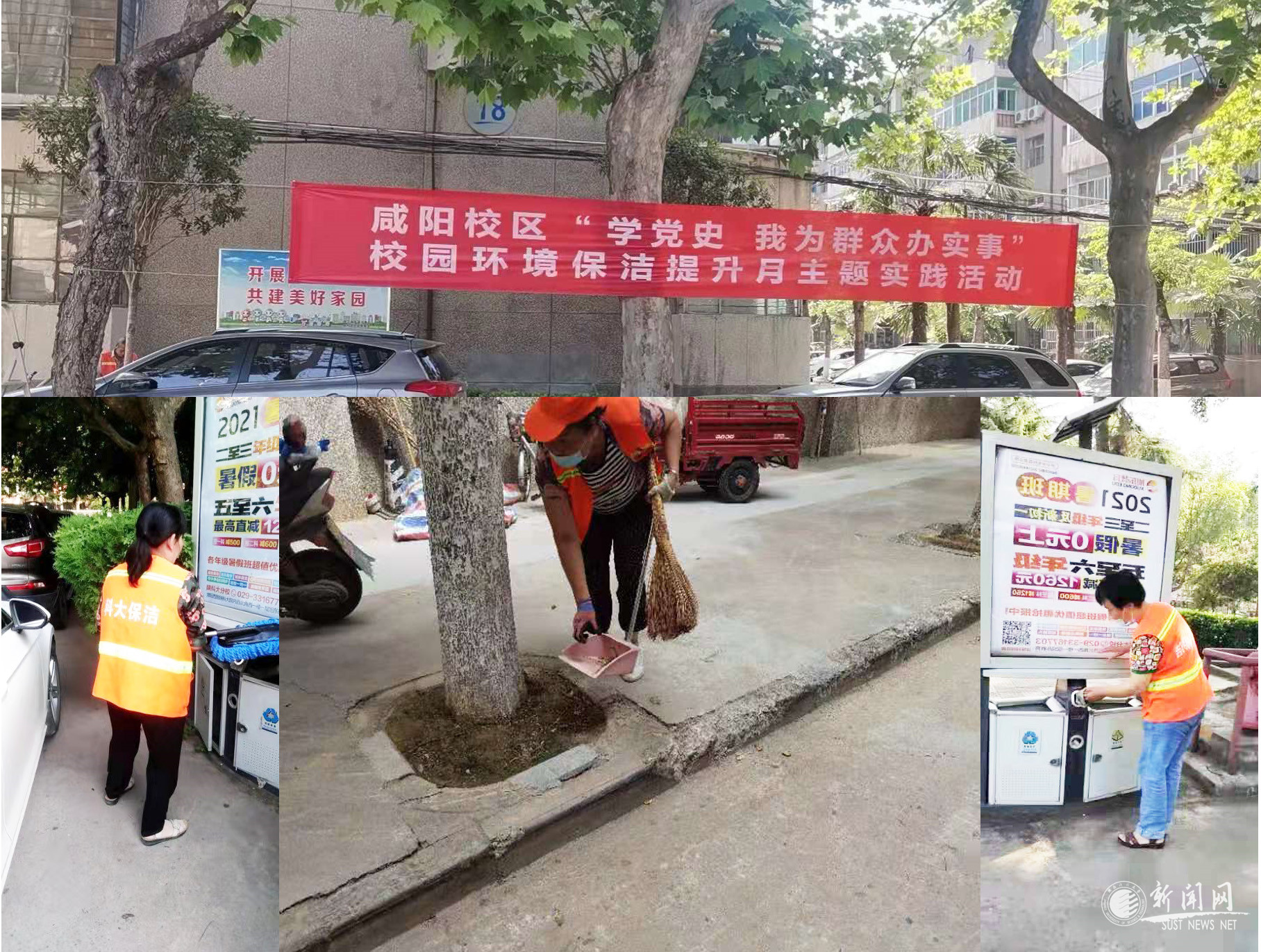 一线职工齐心协力维护环境卫生。咸阳校区管委会在校区环境提升工作中精益求精,认真梳理出工作中的薄弱环节,明确目标和任务,在6月份集中开展为期一个月的环境卫生提升月活动,并强化和细化考核标准,以工作事迹确定考核结果。活动开展以来,家属区各个角落的环境变得更好了,果皮箱、垃圾桶擦得更加干净明亮了,工作人员的主动性和责任心增强了,居民的满意率、幸福感进一步提高了。