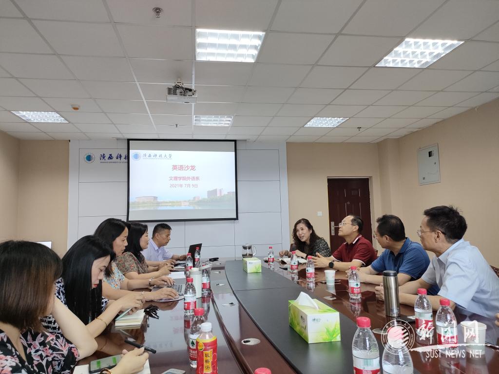 学术沙龙活动分科研团队成员科研成果分享及外语专业与学科建设两个阶段进行。