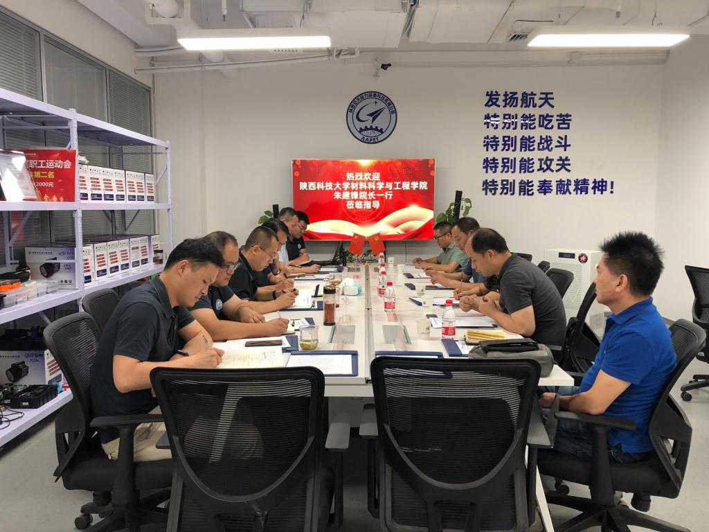 院长朱建锋、副院长王卓、院长助理欧阳海波及相关教师走访了陕西空天动力研究院陕西空天动力装备科技有限公司,双方就建立产学研合作基地、互派工程技术人员和业务骨干参与科研项目开发、技术援助和学术研讨等方面进行了深入交流,并签订了战略合作协议,达成了双方在航空航天材料领域深入合作的意向。