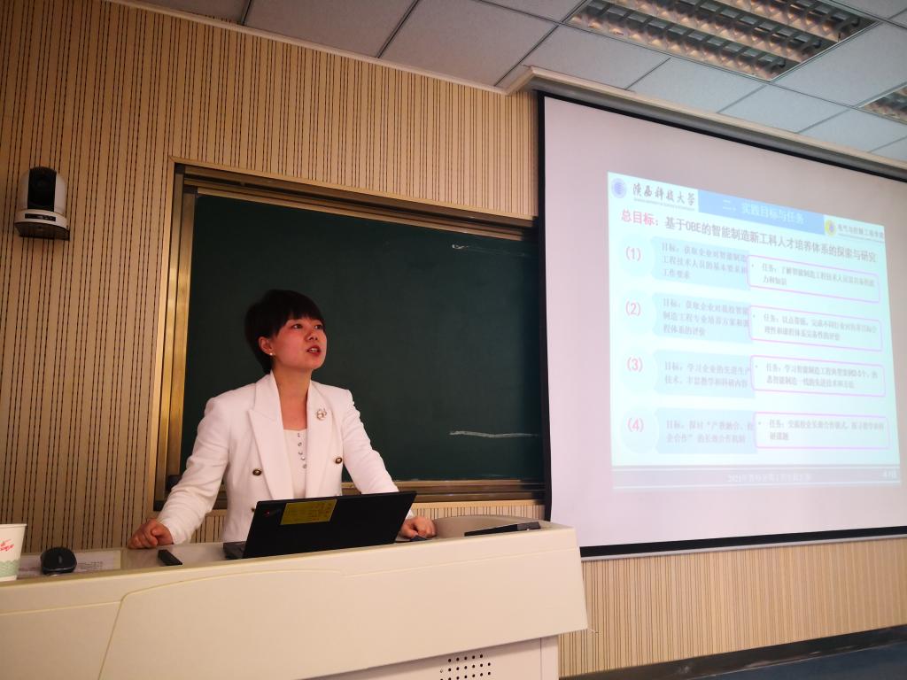 随后,学院智能制造系教师刘嫣结合暑期工程实践情况,做了“基于OBE的智能制造新工科人才培养体系的探索与研究”专题报告。刘嫣从国家及企业对智能制造工程技术人员的基本要求和工作要求、智能制造工程人才培养方案合理性评价、挖掘关键技术和重要信息、探索教学科研合作方向和合作内容、企业数字化转型推进思路和难点等几个方面进行了细致分享,并用“智能制造大势所趋、知行合一重抓课程、与时俱进教学创新、转变理念校企互联”表达了对新工科专业建设的信心和思考。