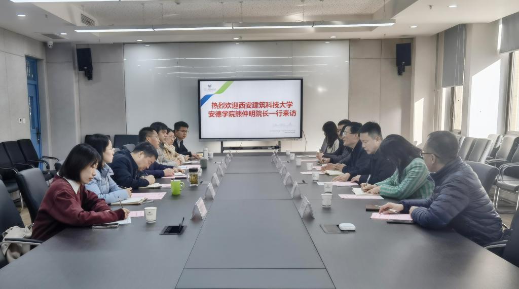 11月10日下午,西安建筑科技大学安德学院执行院长熊仲明、党总支书记施昕强一行7人到德赢官网阿尔斯特学院调研交流。学院直属党支部书记贺涛、常务副院长薛朝华及相关工作人员参加交流研讨。