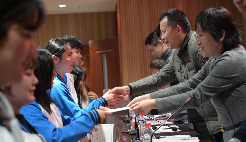 在雄壮的国歌声中,结业典礼拉开序幕。张凯凯宣读《2020级预科生结业学生名单》,陈援宣读《关于表彰2020级优秀预科结业生的决定》。与会领导分别为36名结业生、8名优秀结业生颁发结业证书和荣誉证书。