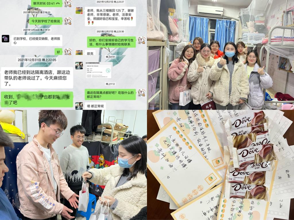 在西安疫情最吃紧的阶段,为了保障她的125名考研学生能够顺利进入考场,怀有九个月身孕的“准妈妈”刘红,每天拖着笨重的身体四处奔走,一边组织安排学生参加学校的核酸检测,一边通过线上线下的方式与招生考点、学生家长、学院领导等联系沟通尽力解决学生面临的困难,同时为了缓解考研学生的紧张情绪,她将亲手制作考研加油包、亲笔书写明信片送到每一个学生手中,用爱心守护学生的考研梦想。考研结束后,她第一时间电话联系到每一位校外考点的学生,确认已安全返校后一颗悬着的心才放下来,直到现在,每天电话联系因外出考研被隔离的学生谈谈心,关注学生每日体温变化及核酸检测等数据,已经成为她的工作日常。刘红说:“学生的信任是我们工作最大的动力,陪着学生成长是我最大的幸福,只要你们需要,我一直都在”。