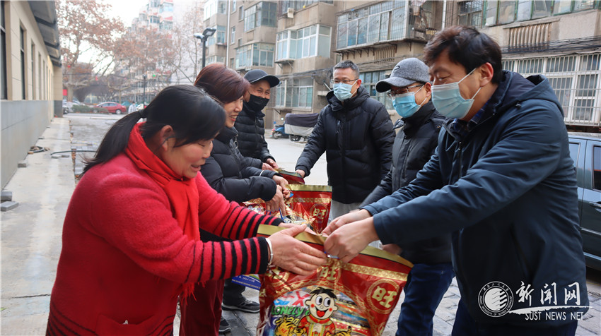 慰问过程中,刘运带领班子成员一起为工作人员送上慰问品,关切地询问他们工作和生活情况,代表学校对大家的辛勤付出表示诚挚的感谢,祝愿大家新春幸福安康、万事如意!在交流中,刘运勉励大家继续以负责的态度、饱满的热情做好咸阳校区的日常服务和疫情防控工作,确保小区居民过一个欢乐祥和的春节。
